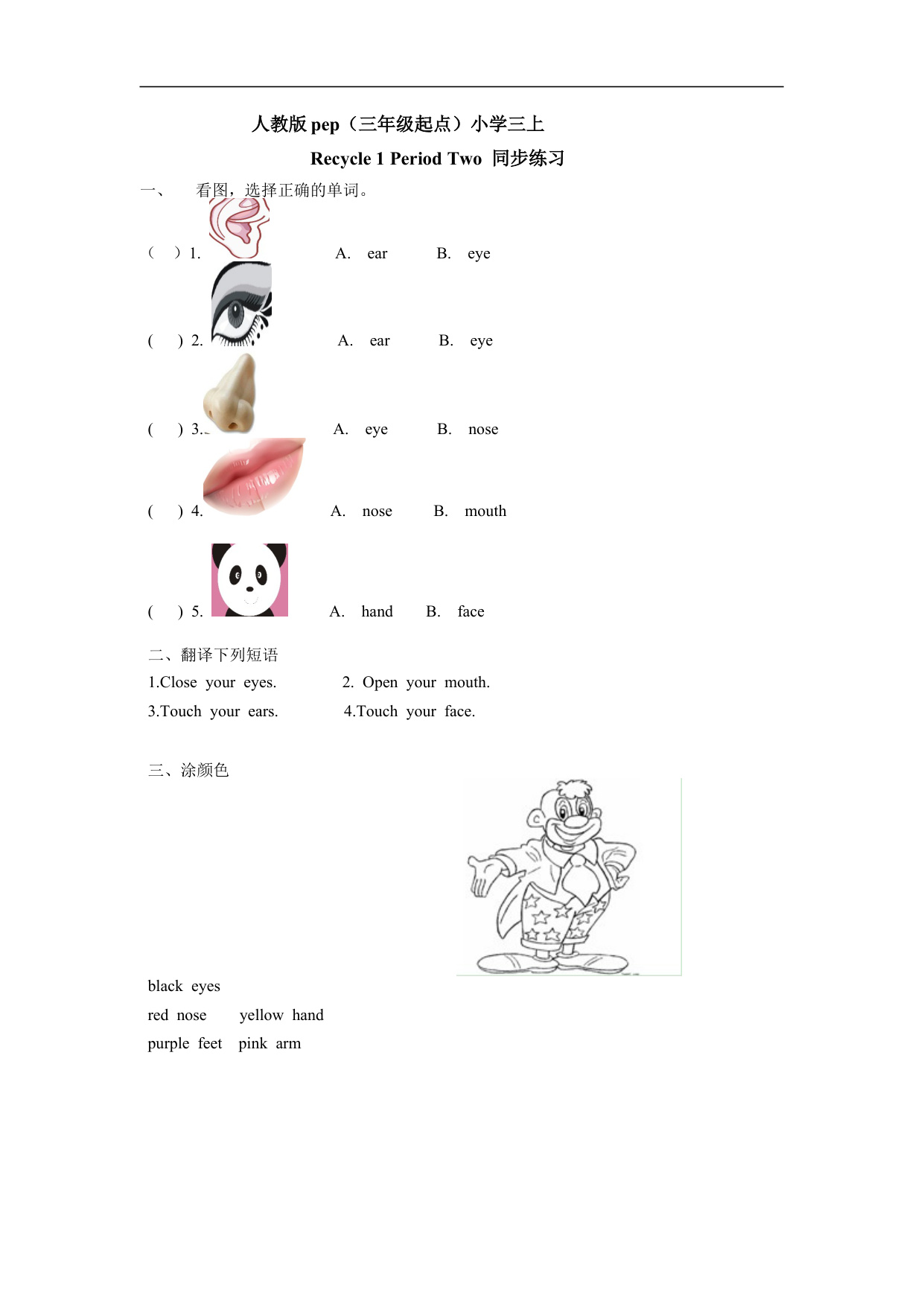 上一篇:人教版pep(三年级起点)小学三年级上册 Recycle 1 Period Three 同步练习含答案