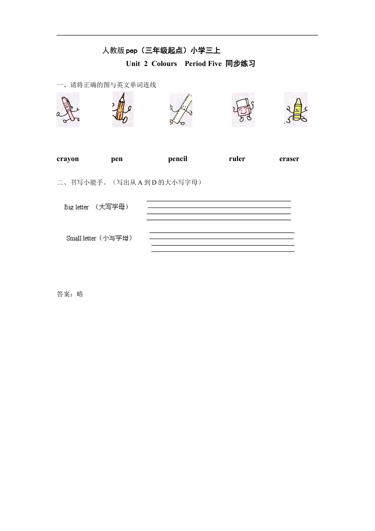 下一篇:人教版pep(三年级起点)小学三年级上册 Unit 2 Colours Period Two 同步练习含答案