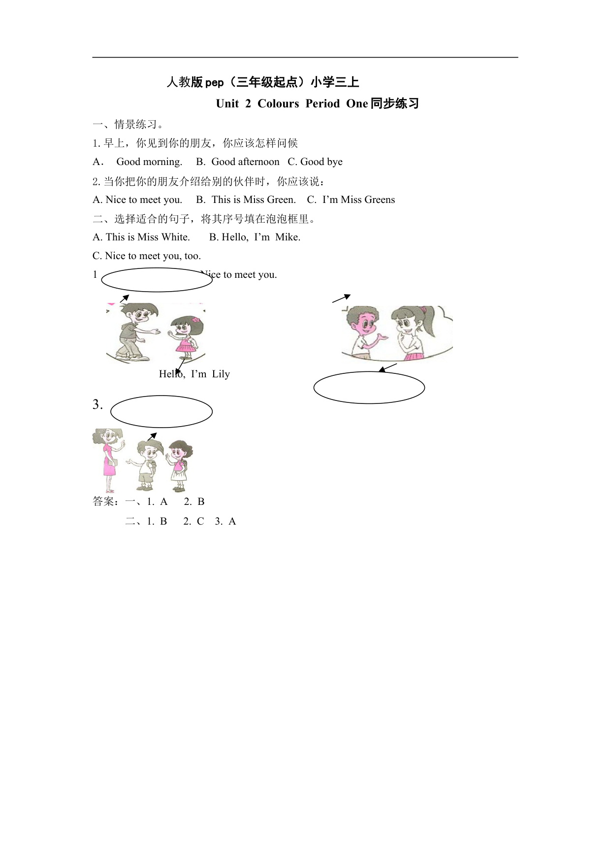 下一篇:人教版pep(三年级起点)小学三年级上册 Unit 2 Colours Period Six 同步练习含答案