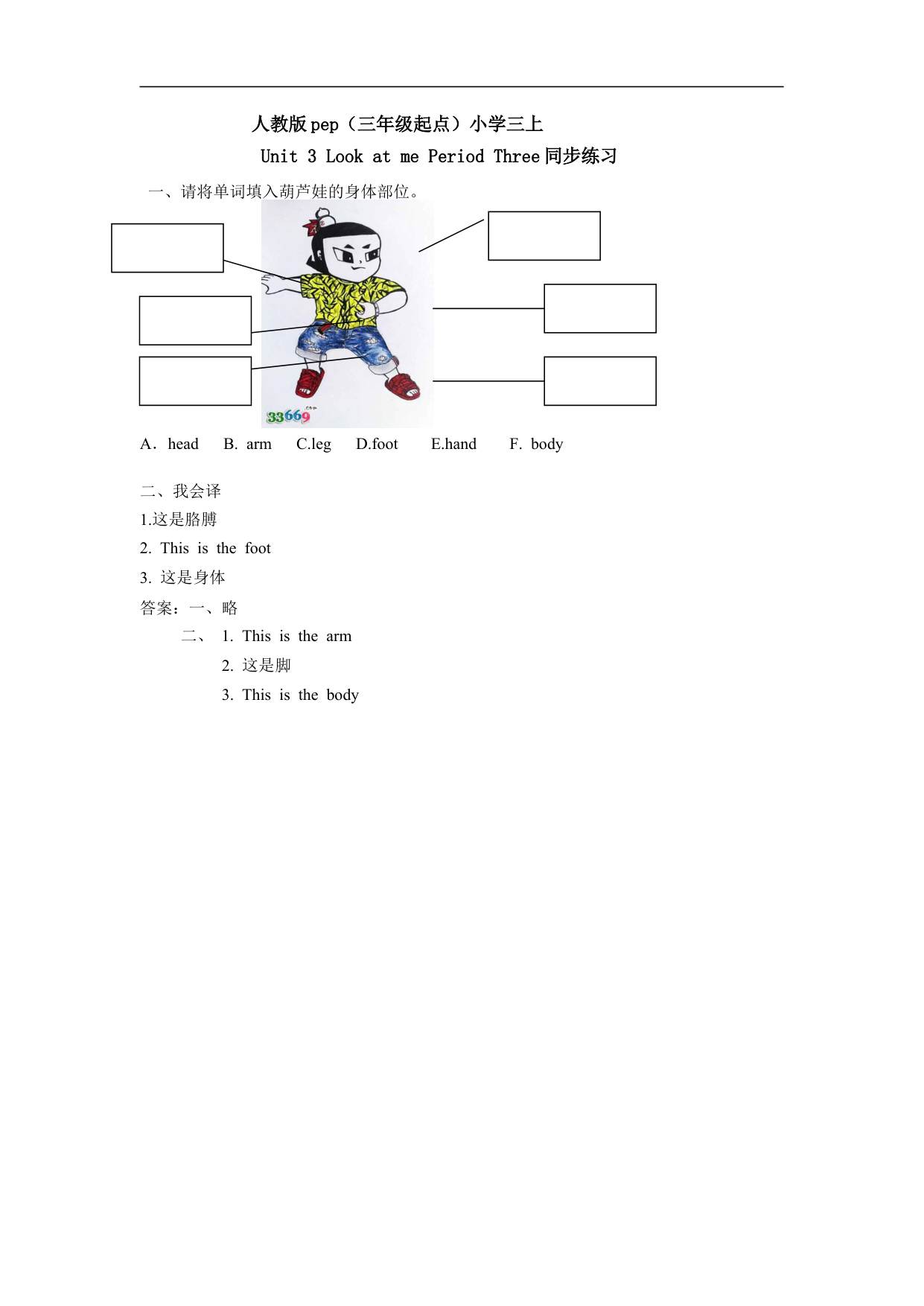 上一篇:人教版pep(三年级起点)小学三年级上册 Unit 3 Look at me Period Six 同步练习含答案