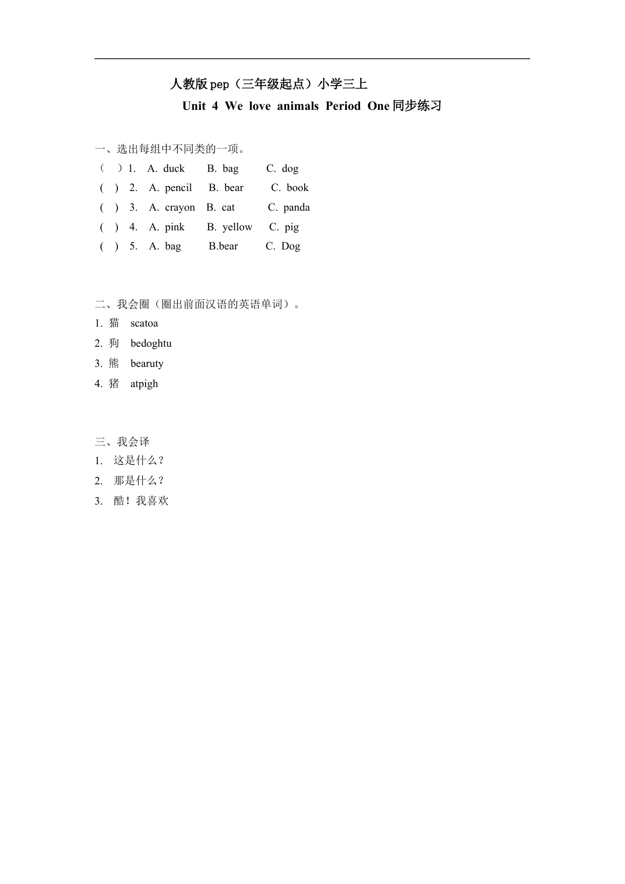 下一篇:人教版pep(三年级起点)小学三年级上册 Unit 4 We love animals Period Three同步练习含答案