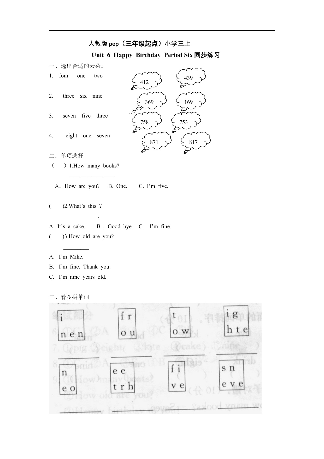 下一篇:人教版pep(三年级起点)小学三年级上册 Unit 6 Happy Birthday Period Three同步练习含答案