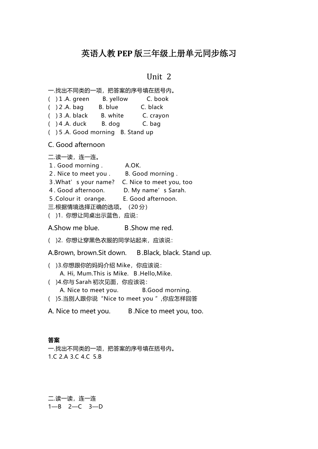 上一篇:英语人教PEP版三年级上册Unit1单元同步练习