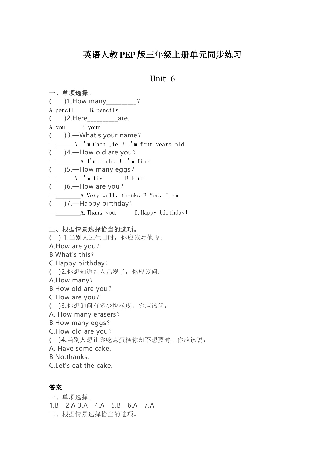 上一篇:英语人教PEP版三年级上册Unit5单元同步练习