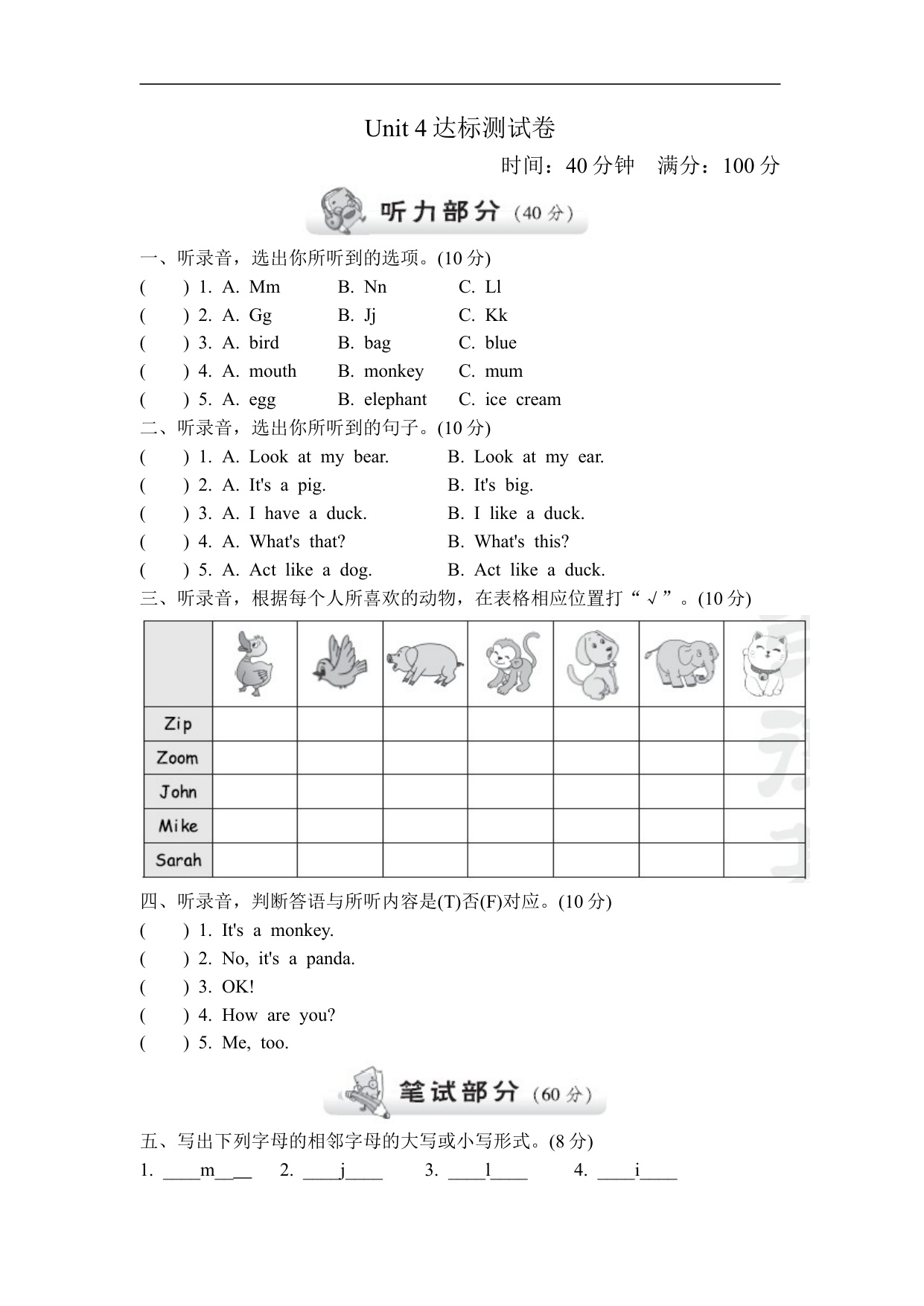 下一篇:人教PEP版三年级上册单元测试卷(含MP3听力)单元测试卷(第二套)Unit5综合能力测评含答案