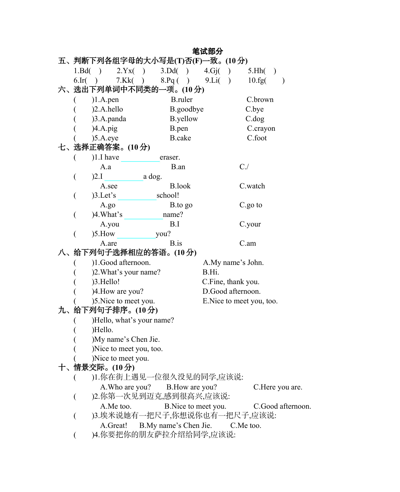 下一篇:最新(人教PEP)三年级上学期英语期中测试A卷(含解析答案及听力)
