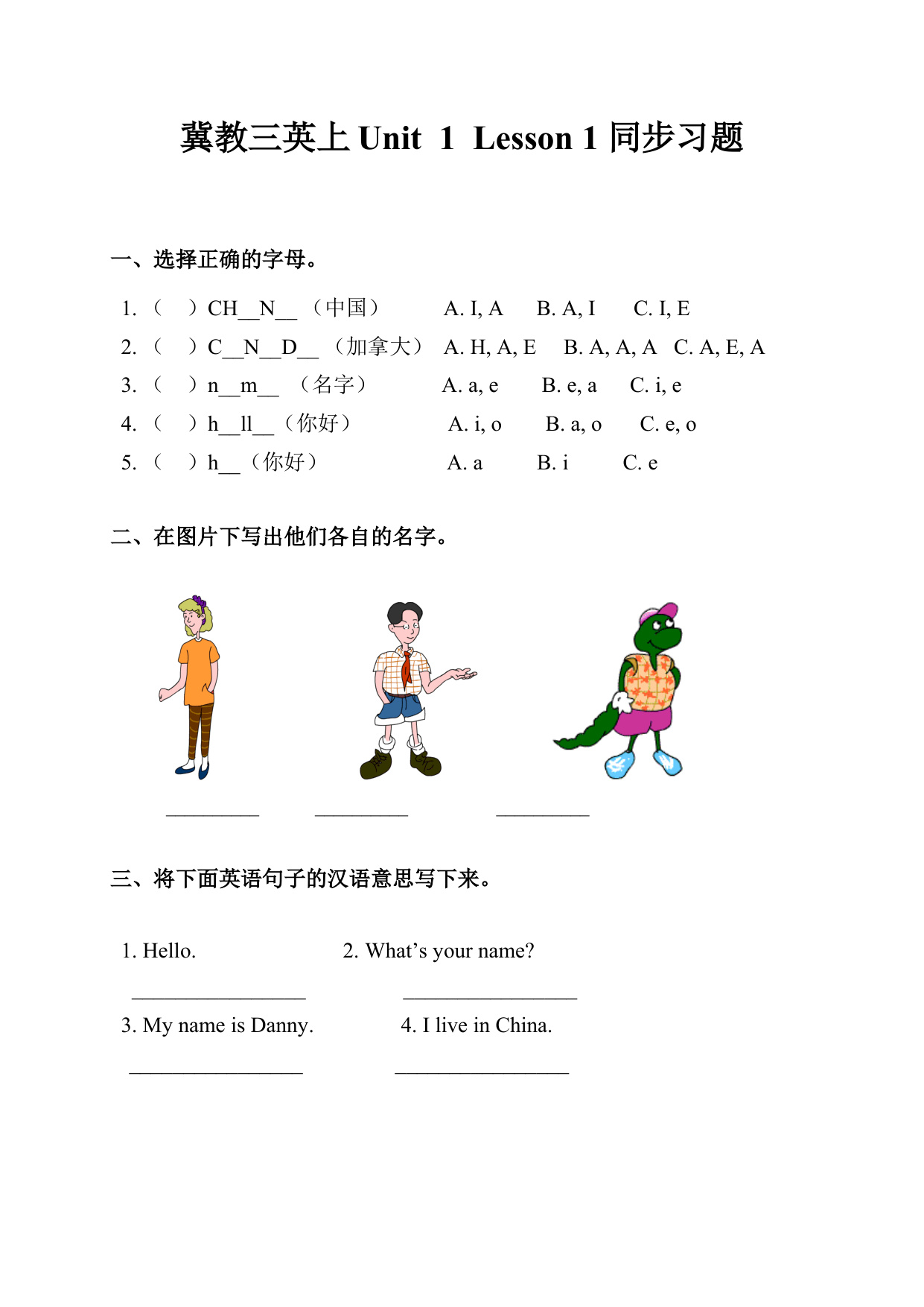 冀教三英上Unit 1 Lesson 1 同步习题 资料为Word格式,请下载后使用相应软件打开。