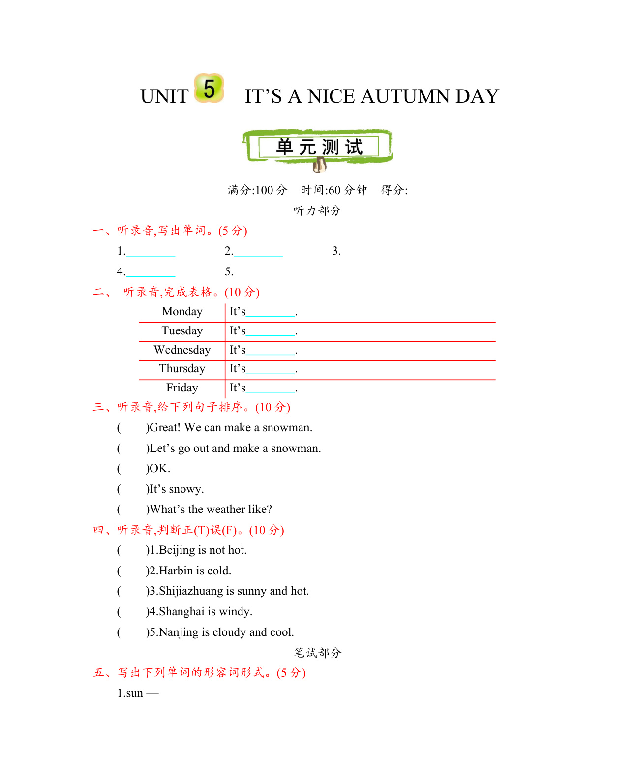 上一篇:北京课改三上 Unit 4 测试卷含听力