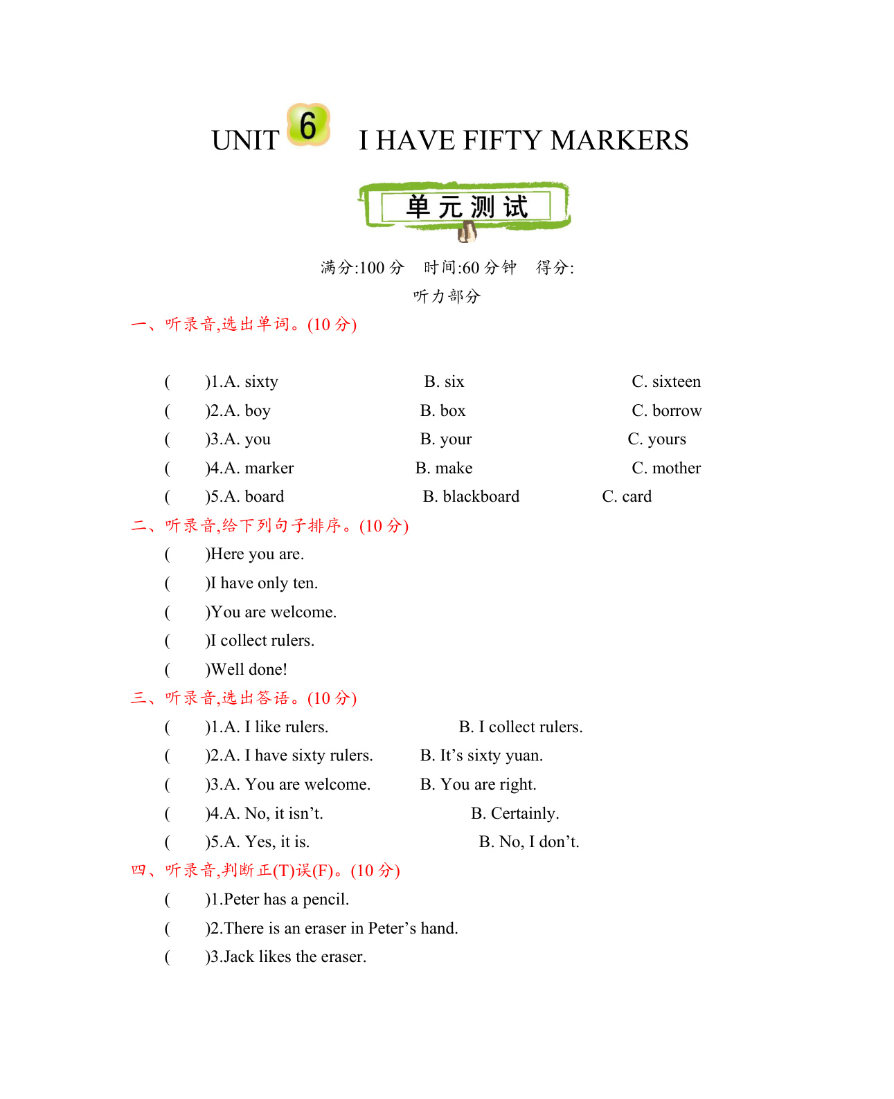 上一篇:北京课改三上 Unit 5 测试卷含听力