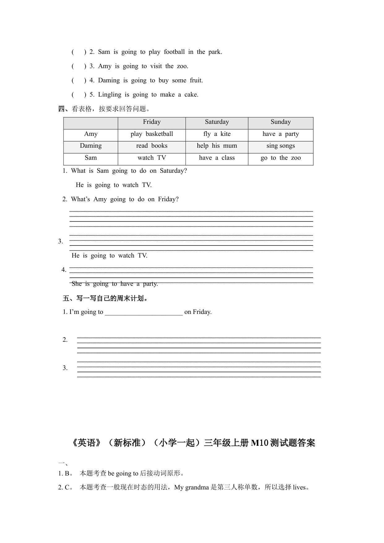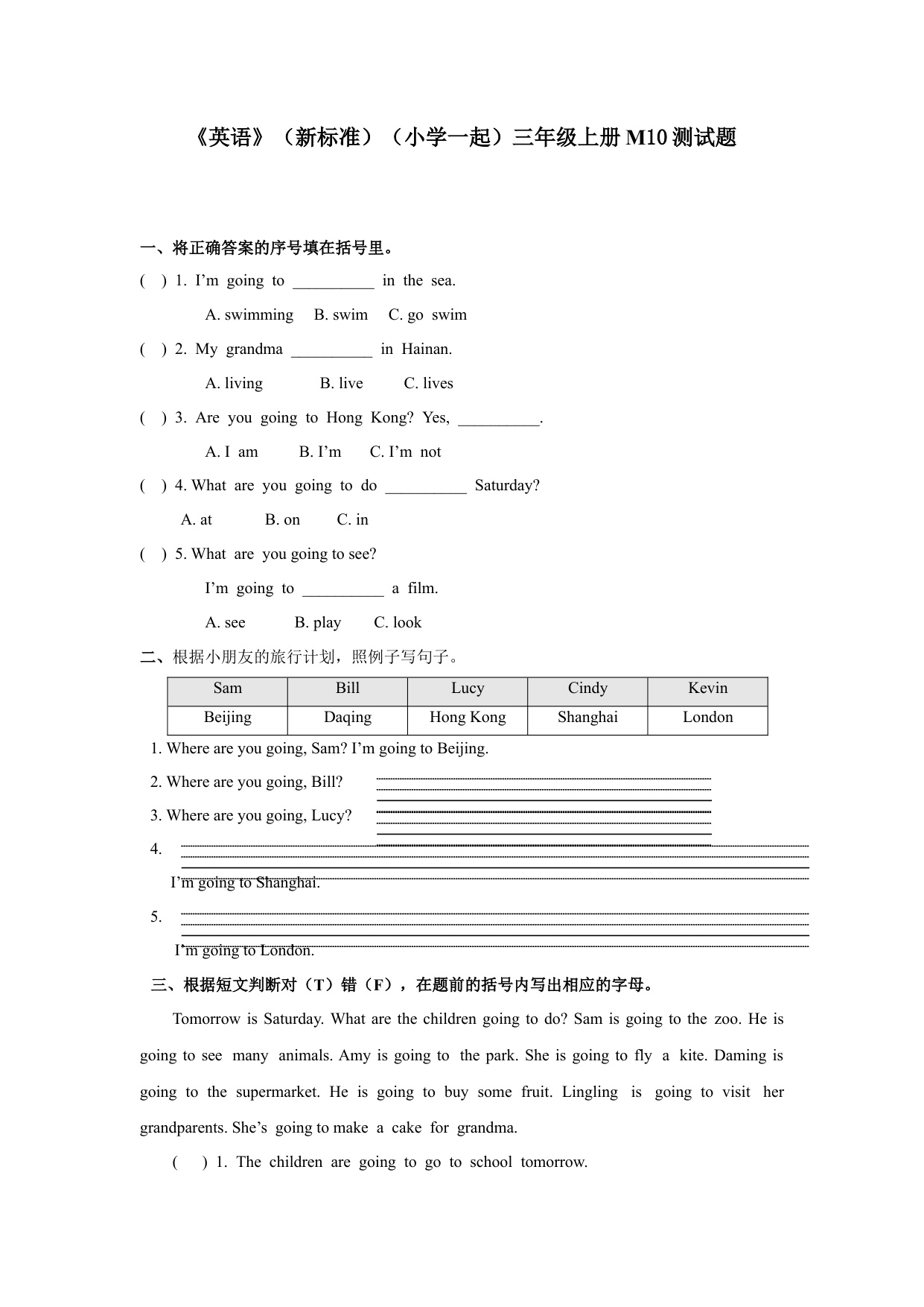 《英语》(新标准)(一年级起点)三年级上册M10模块测试题