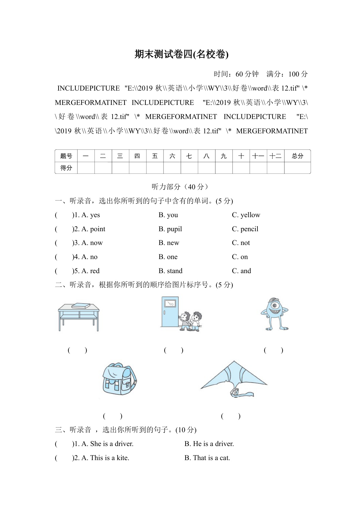 下一篇:小学三年级上册试卷含答案:译林版英语Unit 3 课时1