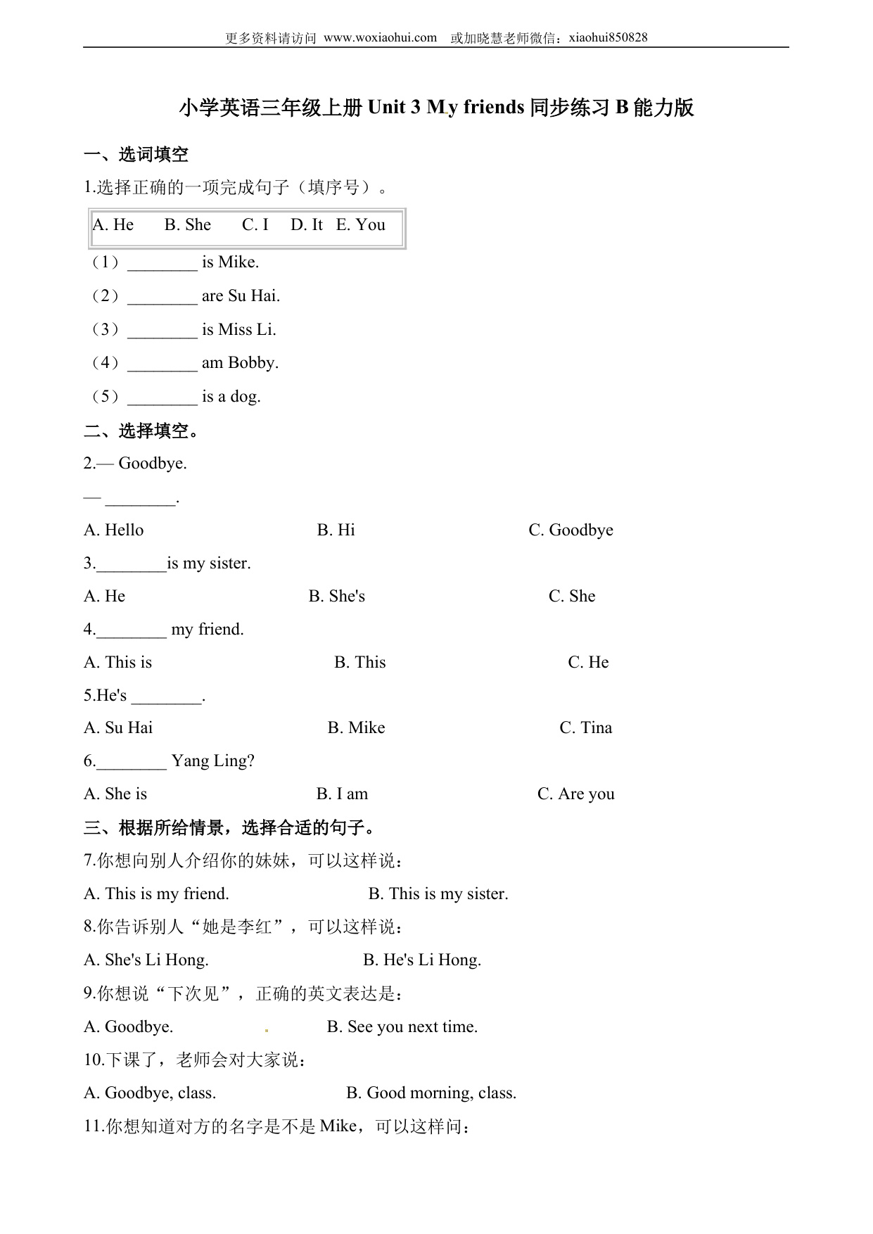 下一篇:小学三年级上册试卷含答案:译林版英语Unit 3 课时2