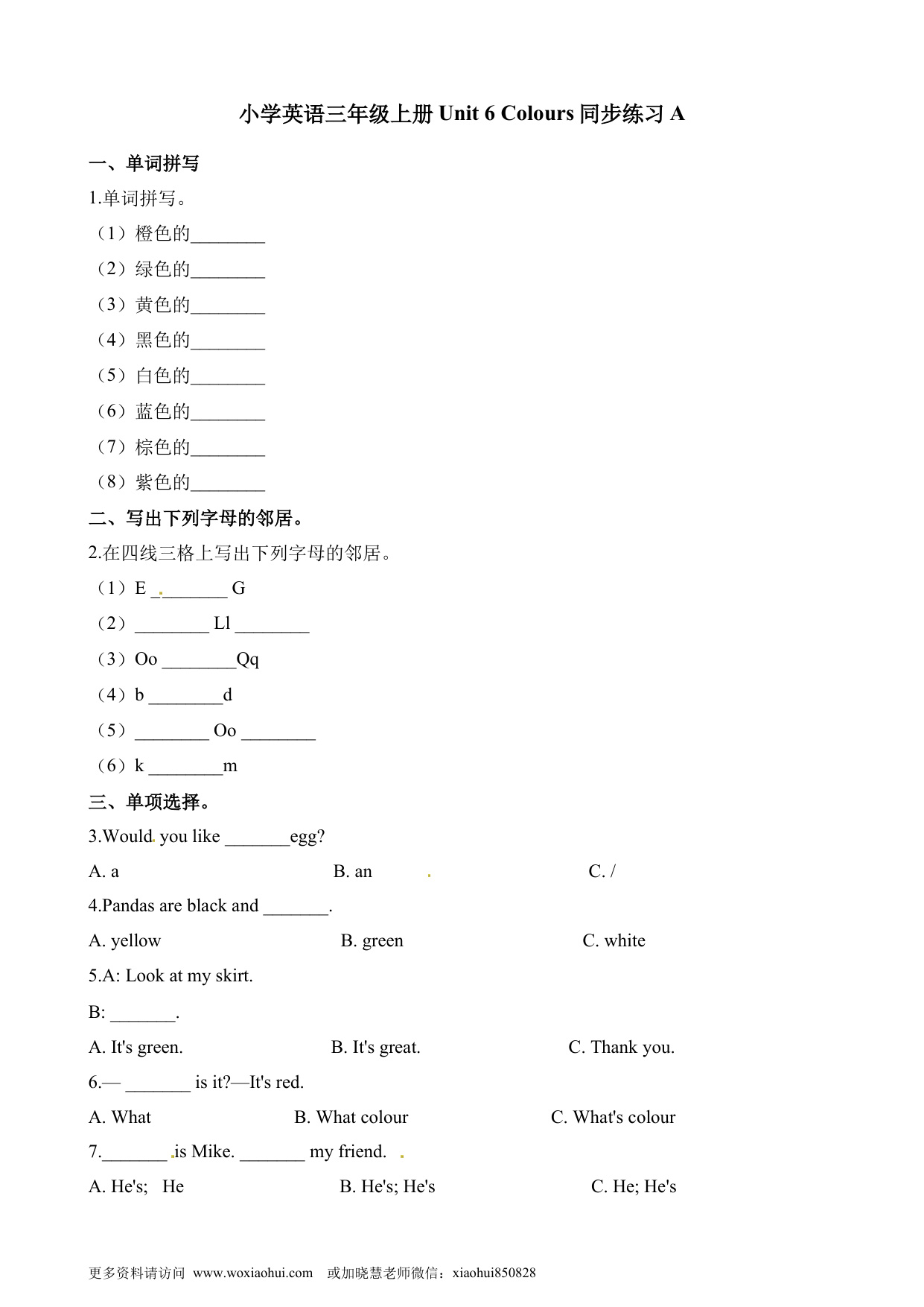 下一篇:小学三年级上册试卷含答案:译林版英语Unit 6 课时2