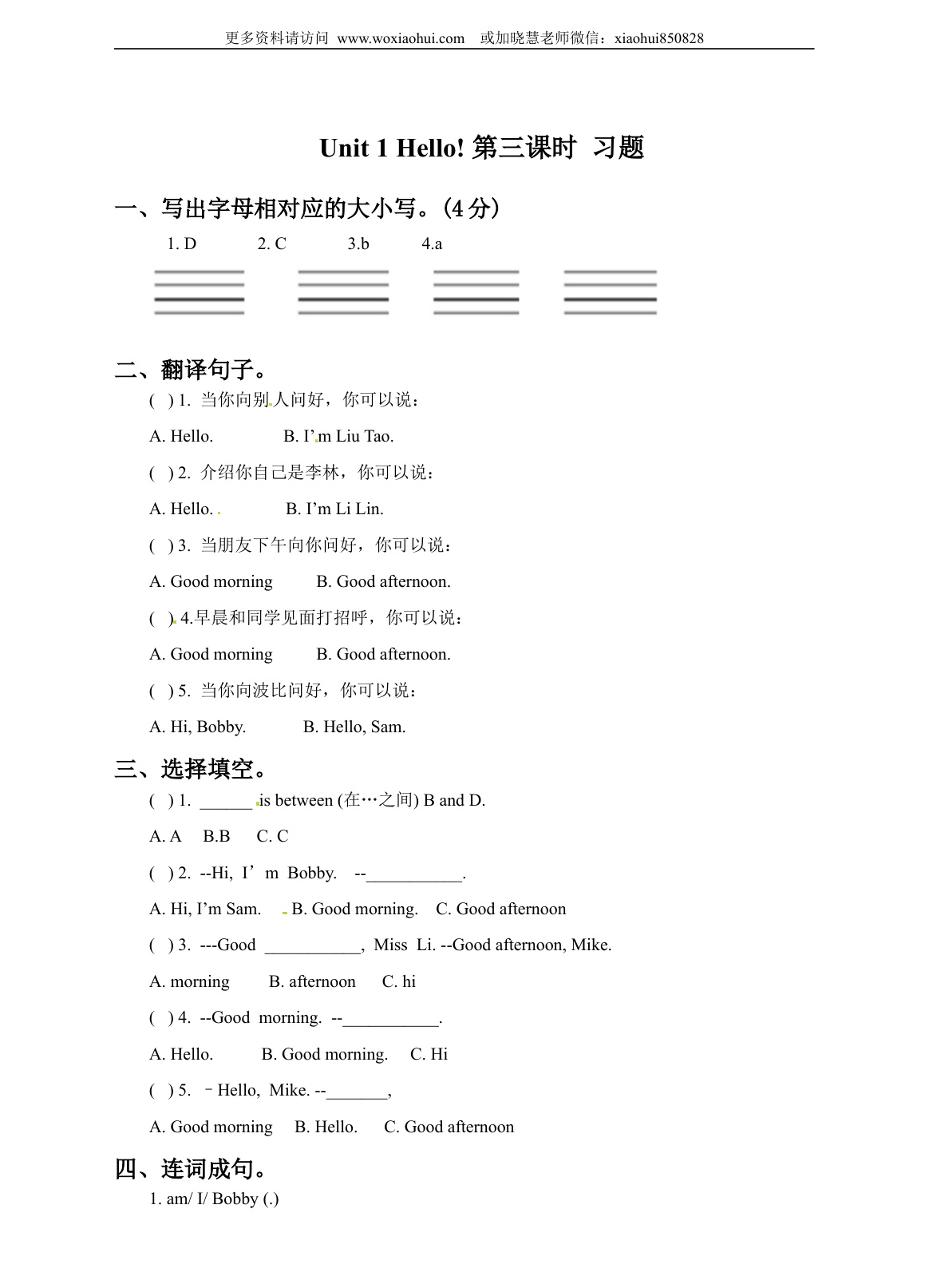下一篇:小学三年级上册试卷含答案:译林版英语:Unit 1课时3