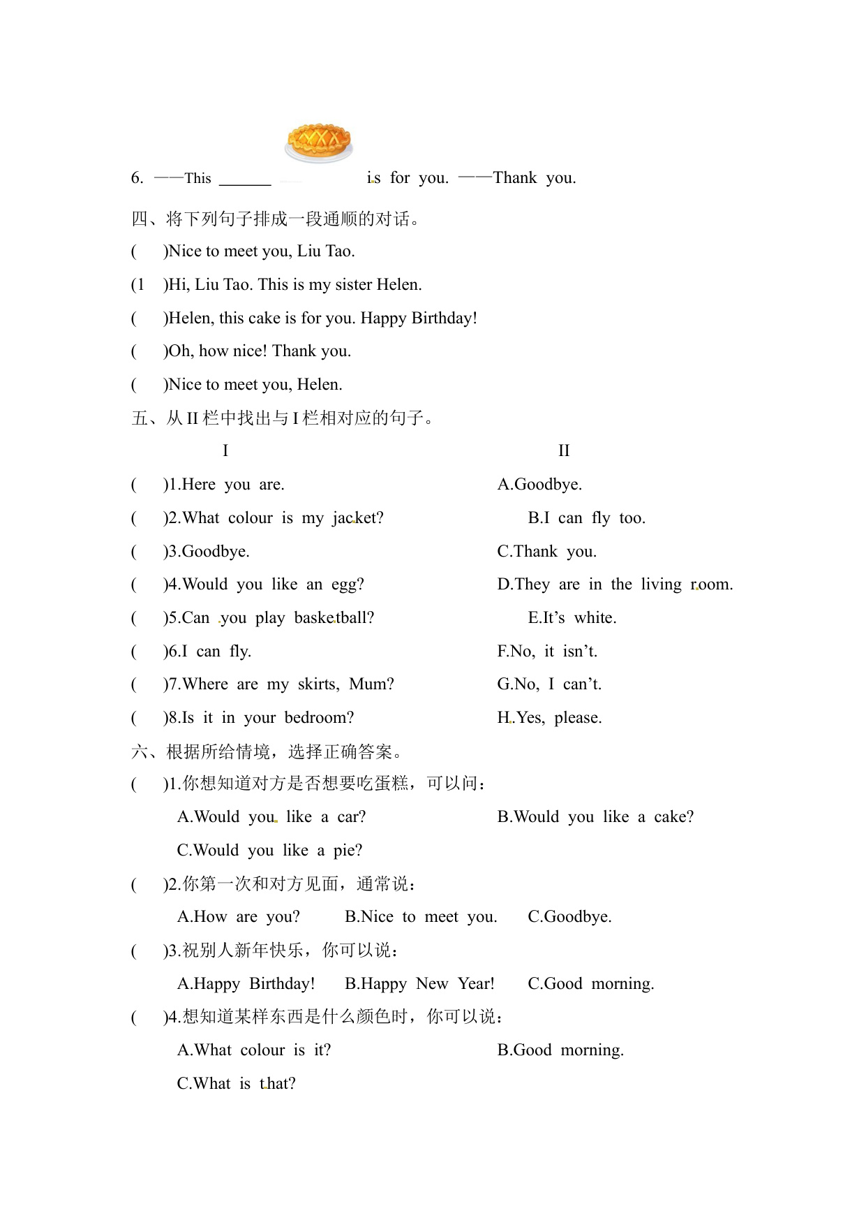 下一篇:三年级上册英语期末冲刺卷(三) 译林版 (无听力,含答案)
