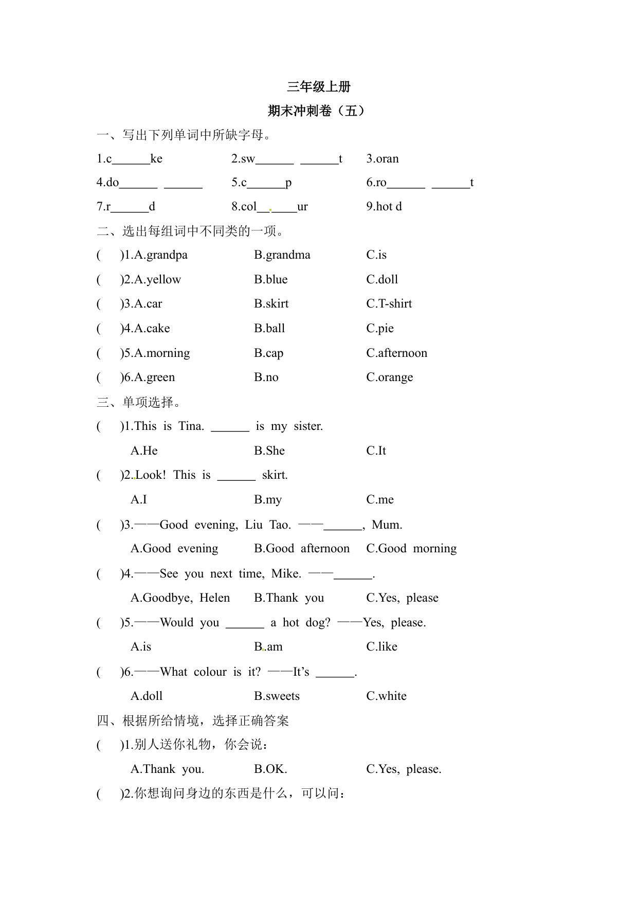 下一篇:三年级上册英语期末冲刺卷(四) 译林版 (无听力,含答案)