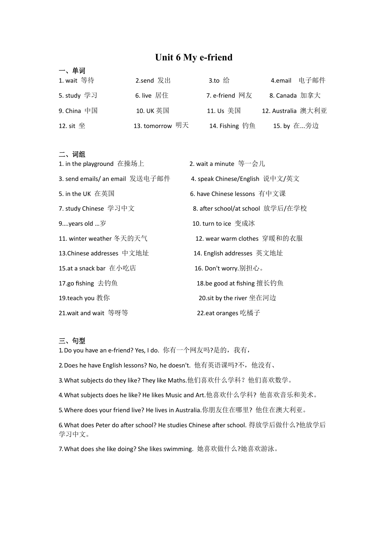 上一篇:译林版五年级上 Unit5 知识点梳理