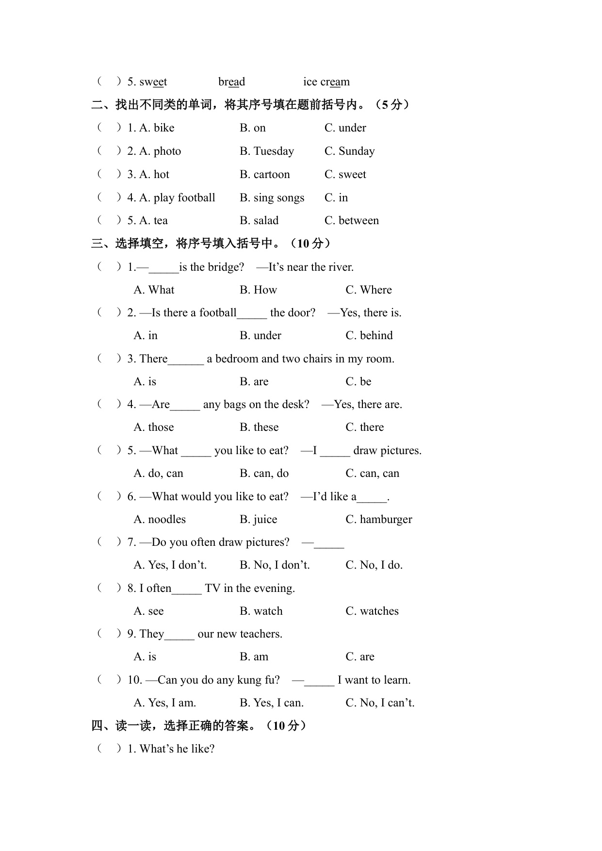 上一篇:10套人教pep英语五上(无听力)真卷二