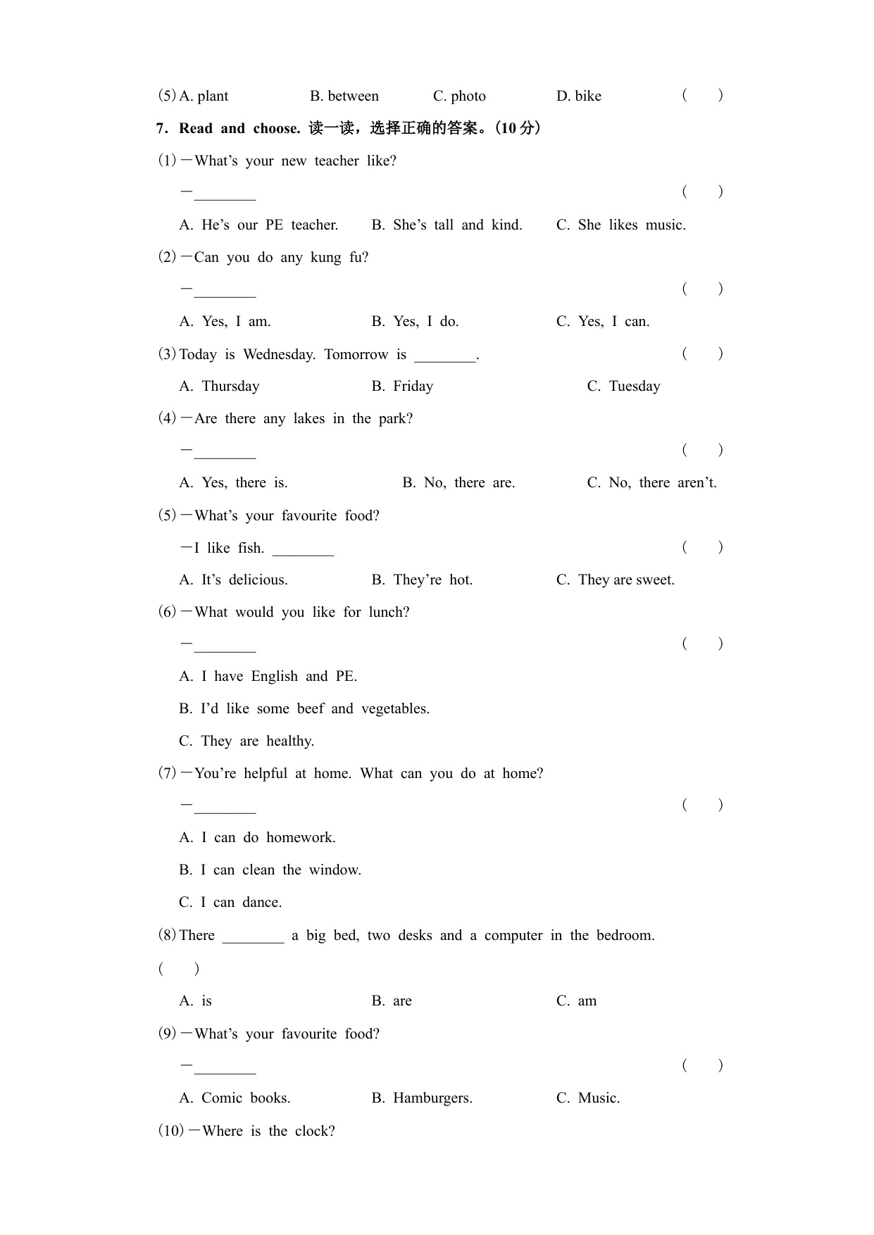 下一篇:人教五上英语期末测试卷 2(含参考答案)