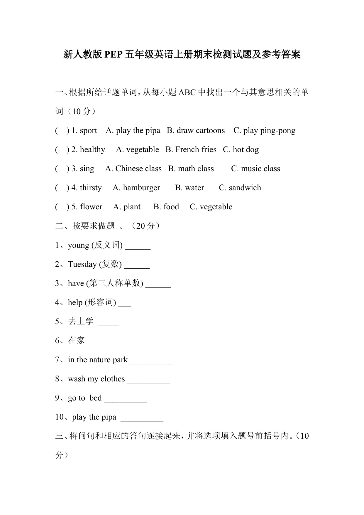 上一篇:PEP版 5 年级英语上册:期末检测题 (4)