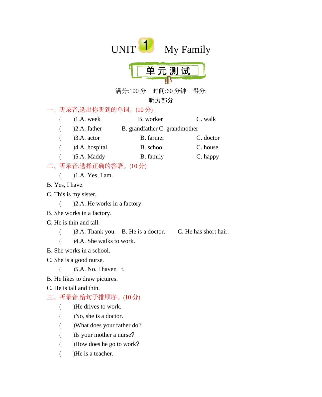 下一篇:冀教版五上 Unit 2 单元测试(含听力)