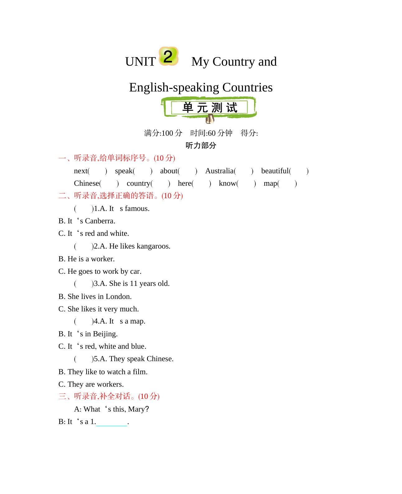 下一篇:冀教版五上 Unit 3 单元测试(含听力)