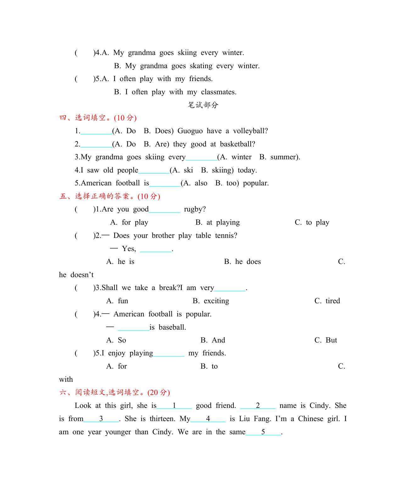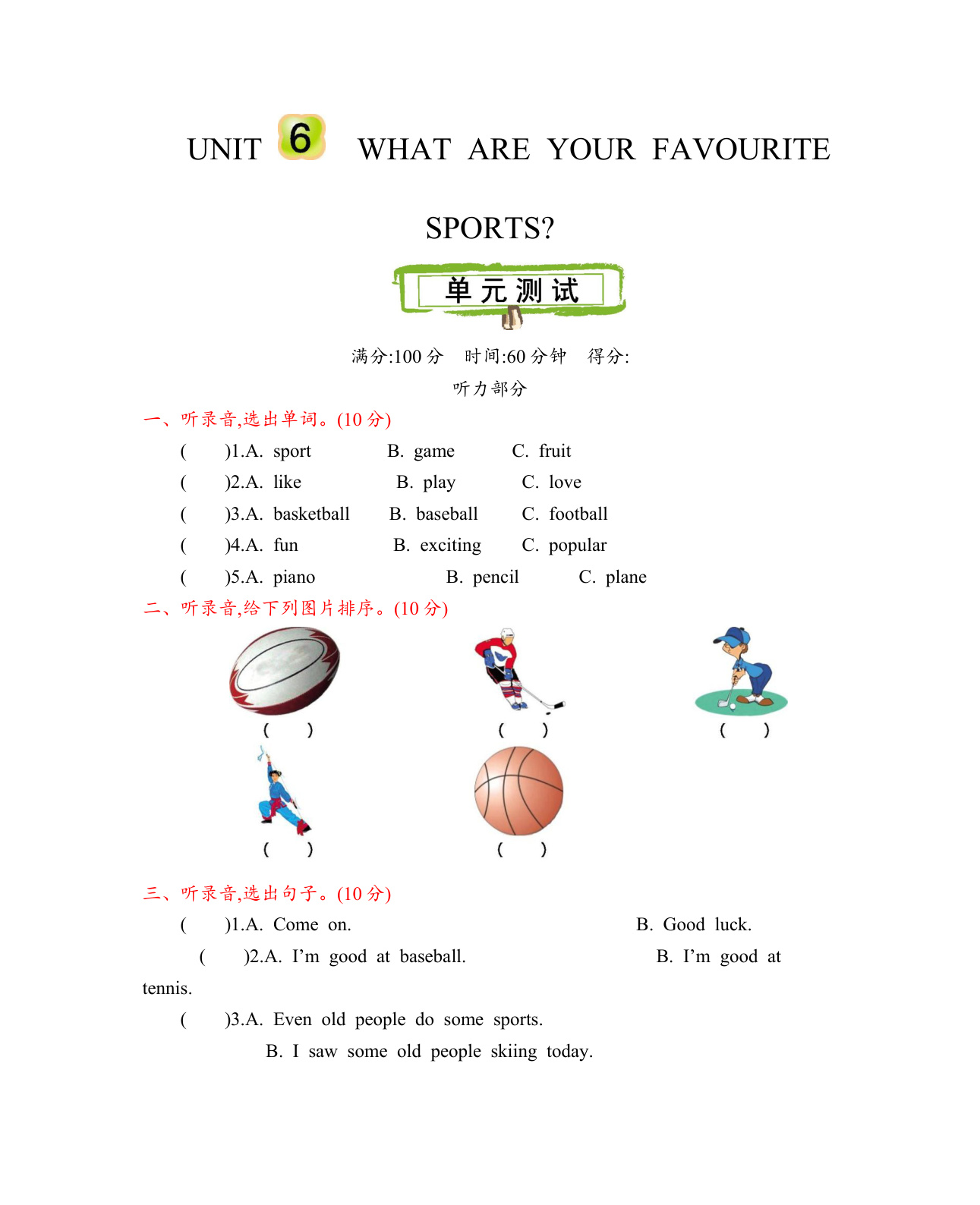 上一篇:北京课改五上 Unit 5 测试卷含听力