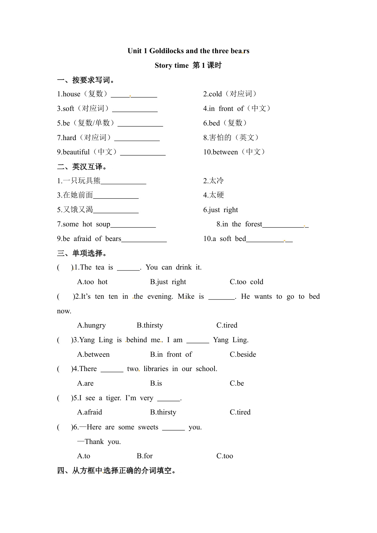 下一篇:一课一练第一套-Unit 1 Goldilocks and the three bears 课时2 Grammar time-Cultural time 译林三起(含答案)(五年级英语上册)
