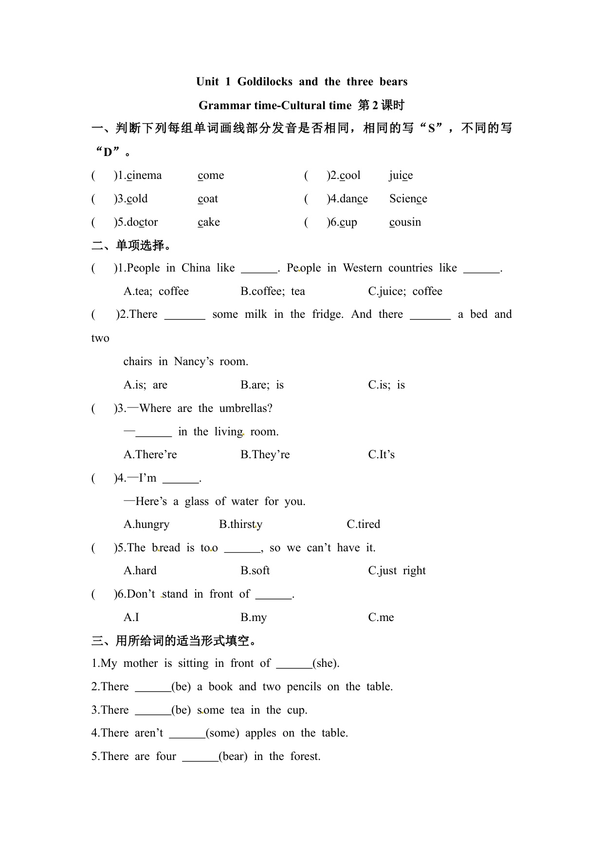 下一篇:一课一练第一套-Unit 1 Goldilocks and the three bears 课时3 Cartoon time-Ticking time 译林三起(含答案)(五年级英语上册)