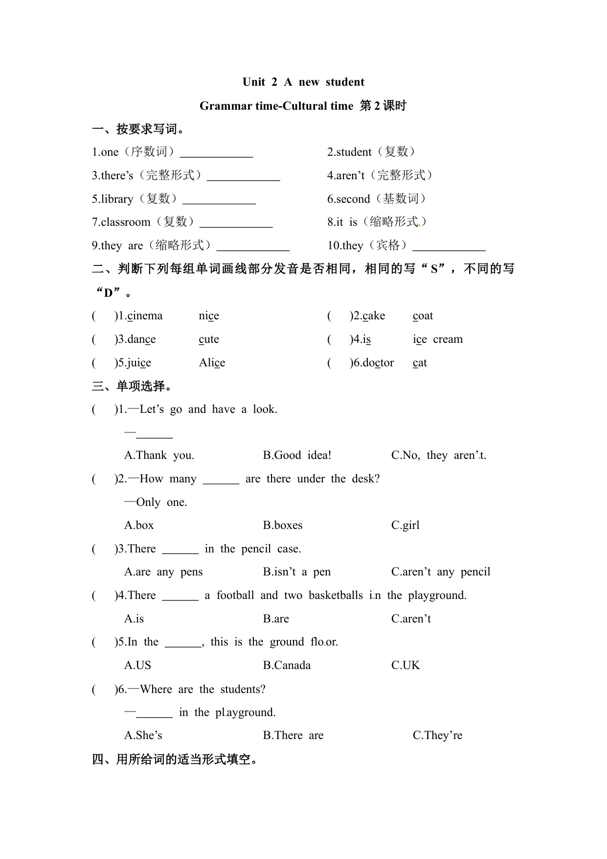 下一篇:一课一练第一套-Unit 2 A new student 课时3 Cartoon time-Ticking time 译林三起(含答案)(五年级英语上册)