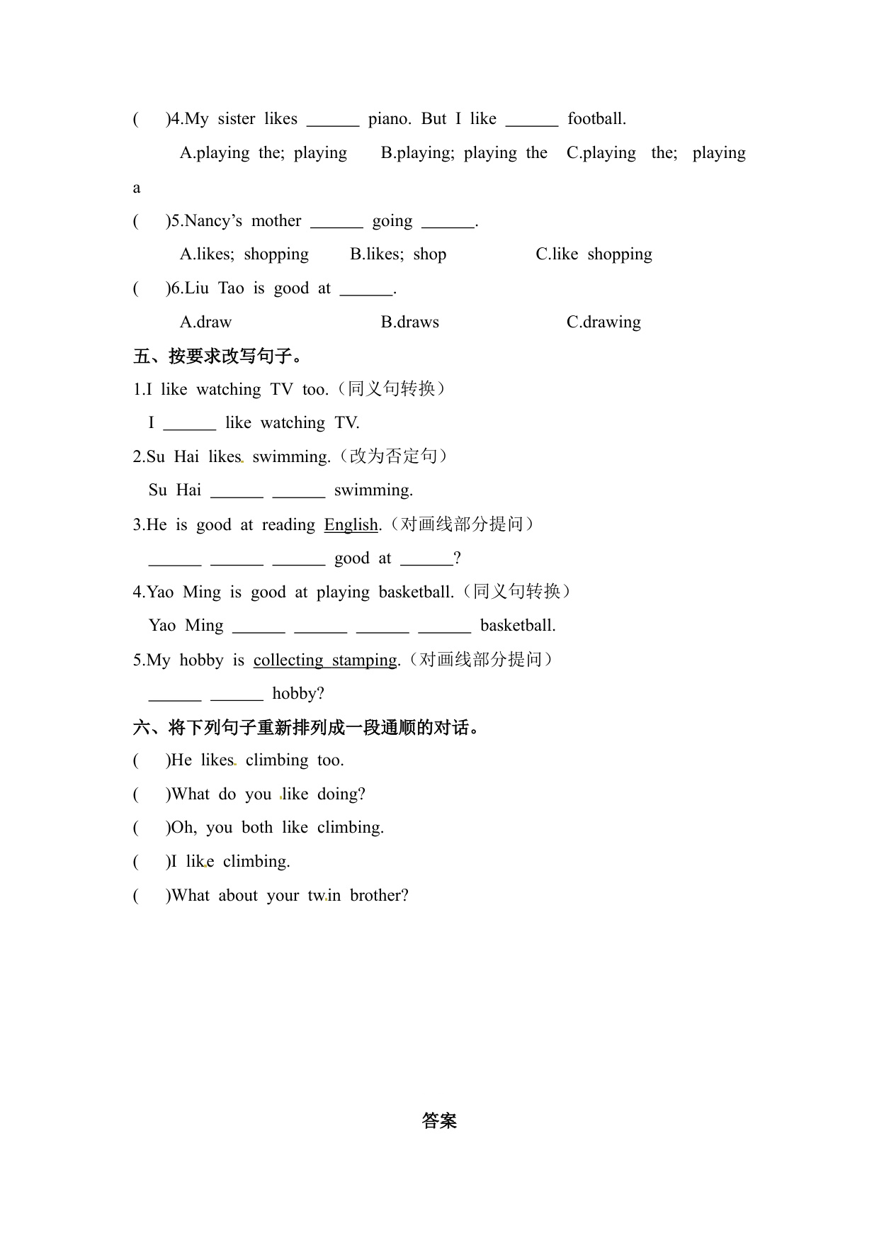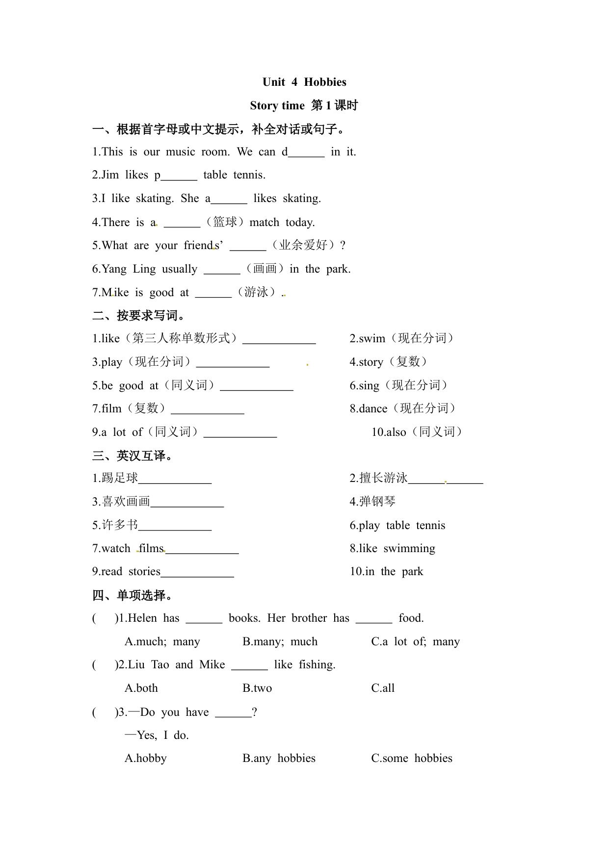 下一篇:一课一练第一套-Unit 4 Hobbies 课时2 Grammar time-Cultural time 译林三起(含答案)(五年级英语上册)