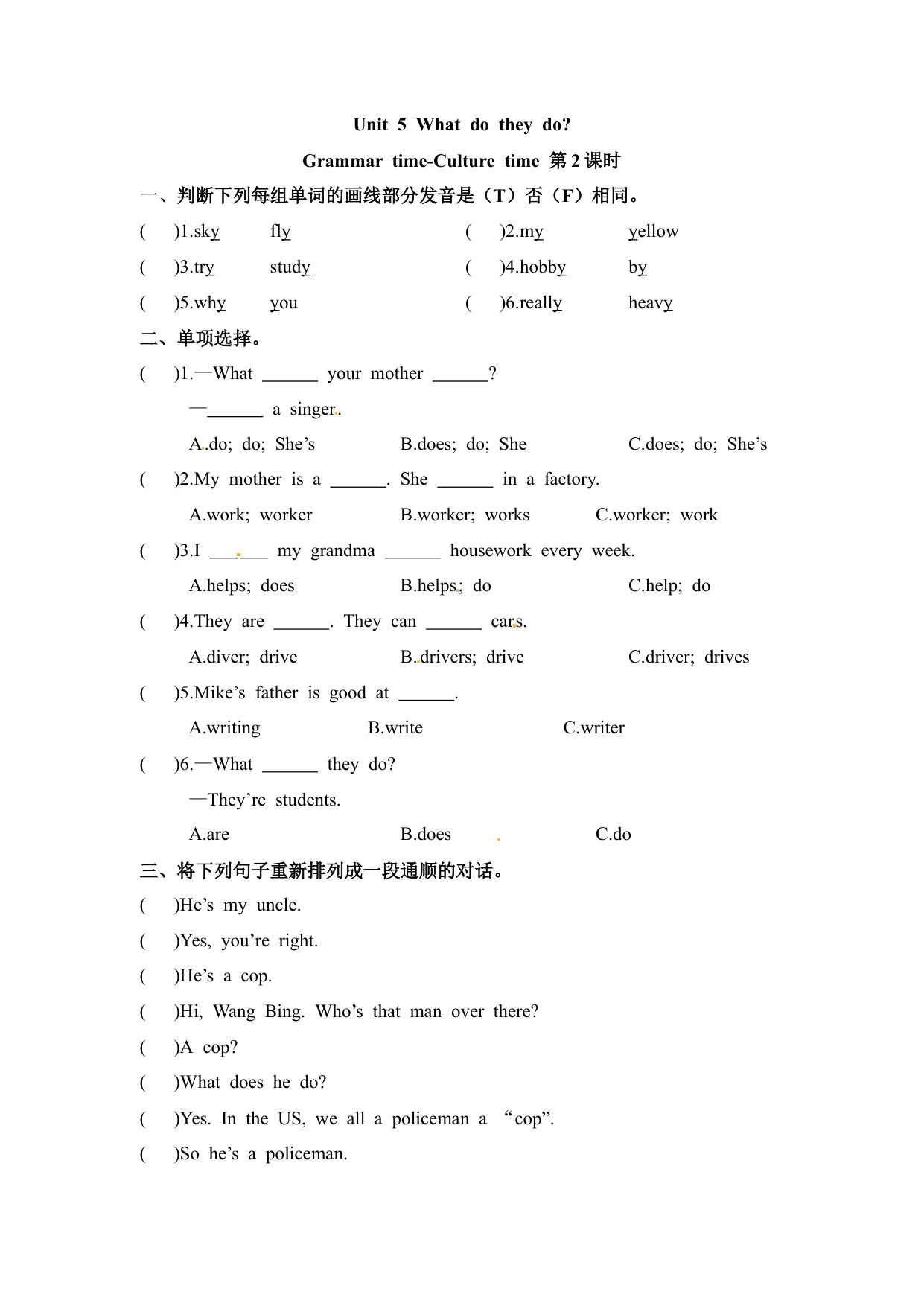下一篇:一课一练第一套-Unit 5 What do they do 课时3 Cartoon time-Ticking time 译林三起(含答案)(五年级英语上册)