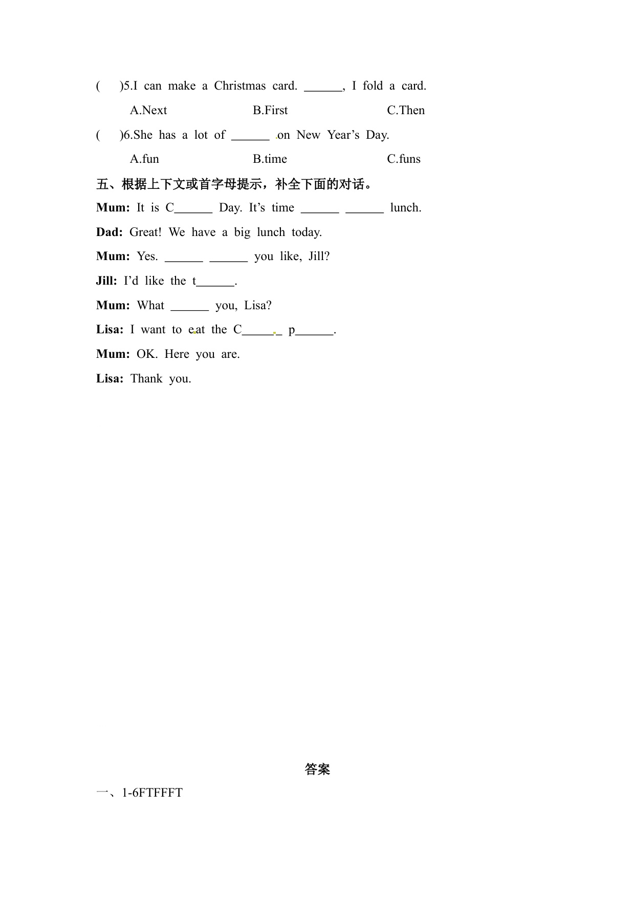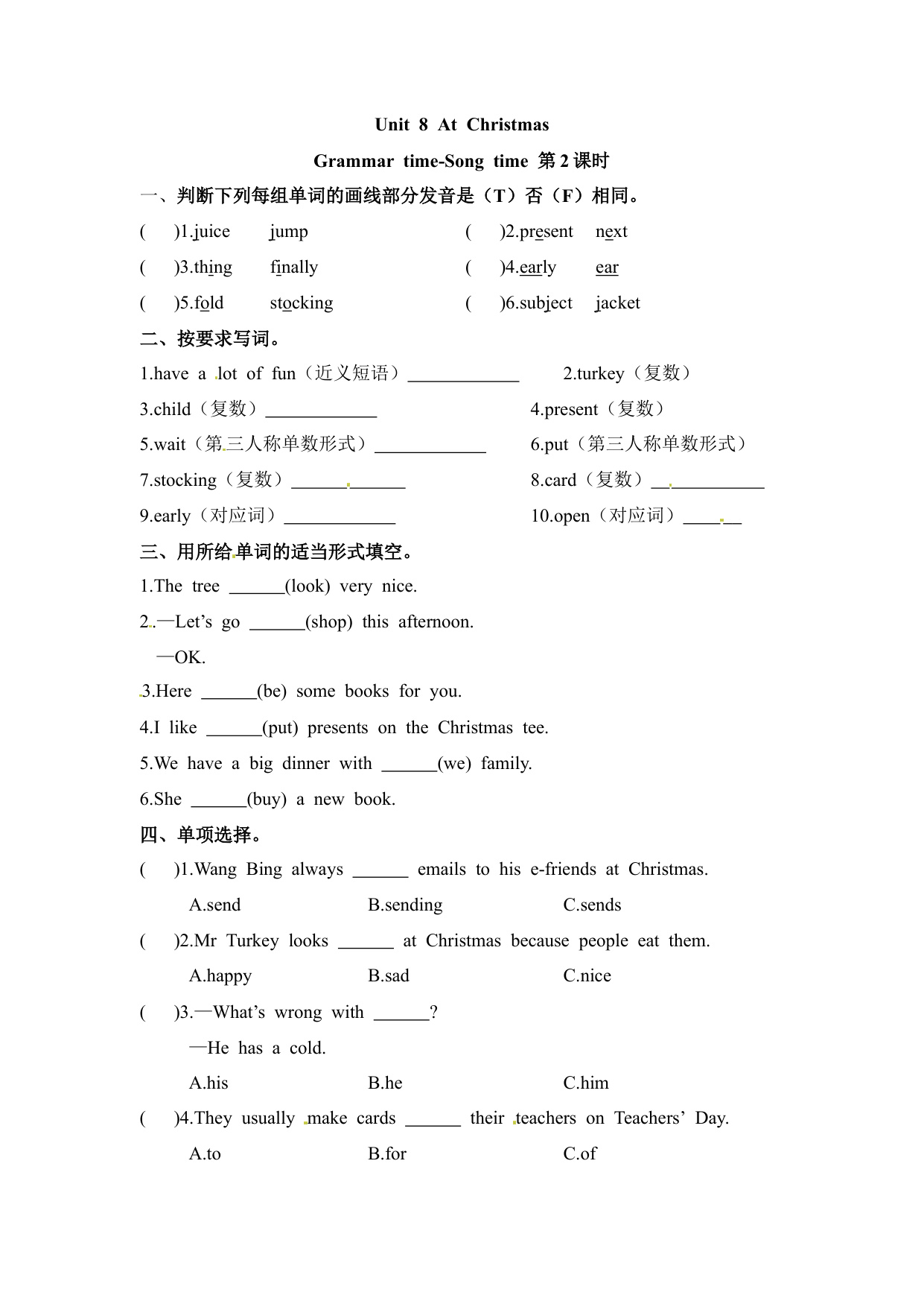 下一篇:一课一练第一套-Unit 8 At Christmas 课时3 Cartoon time-Ticking time 译林三起(含答案)(五年级英语上册)