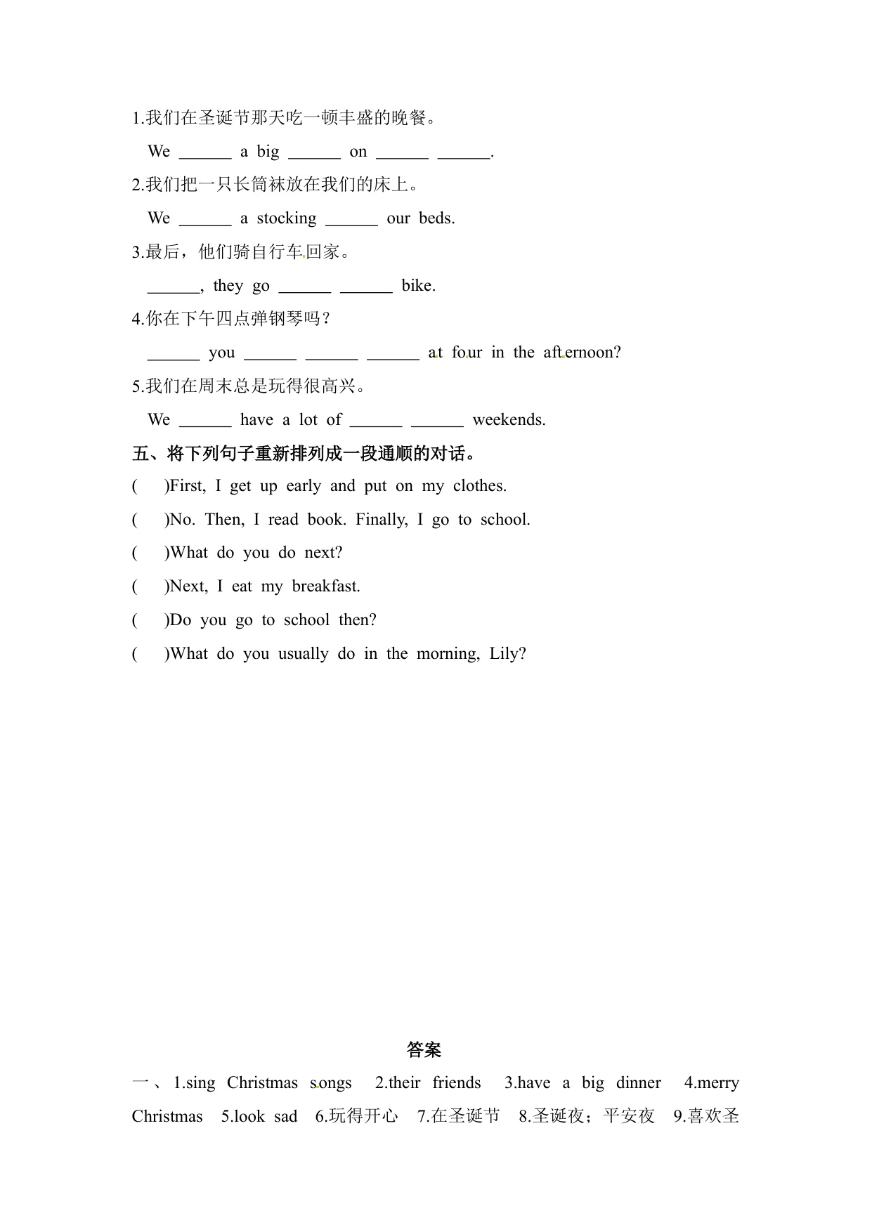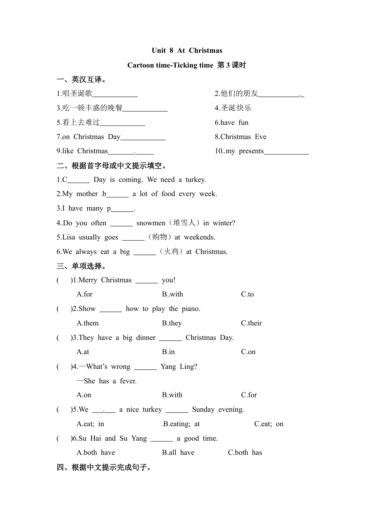 上一篇:一课一练第一套-Unit 8 At Christmas 课时2 Grammar time-Cultural time 译林三起(含答案)(五年级英语上册)