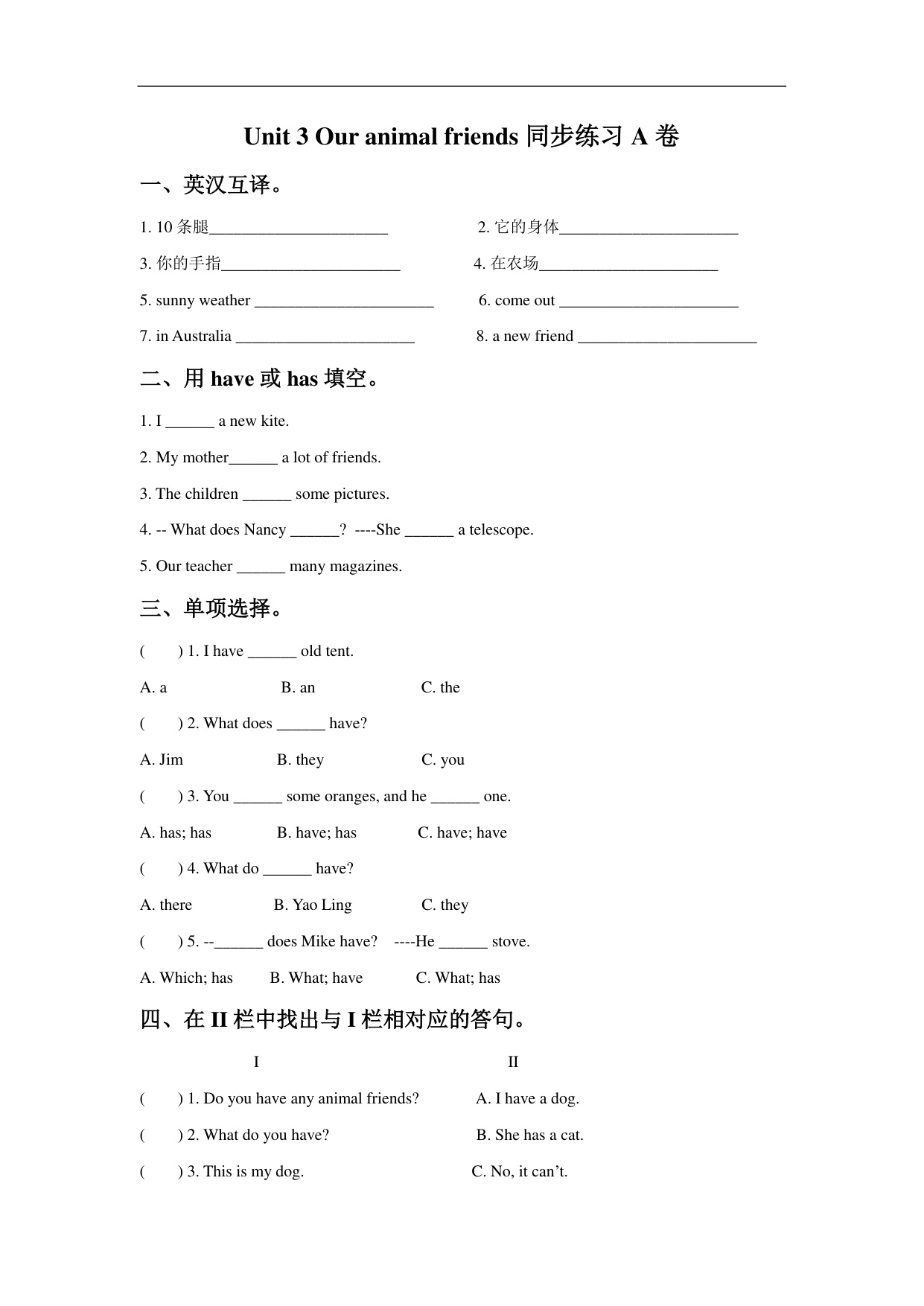 上一篇:一课一练第三套Unit 2 A new student 同步练习A卷(苏教译林版英语五上)
