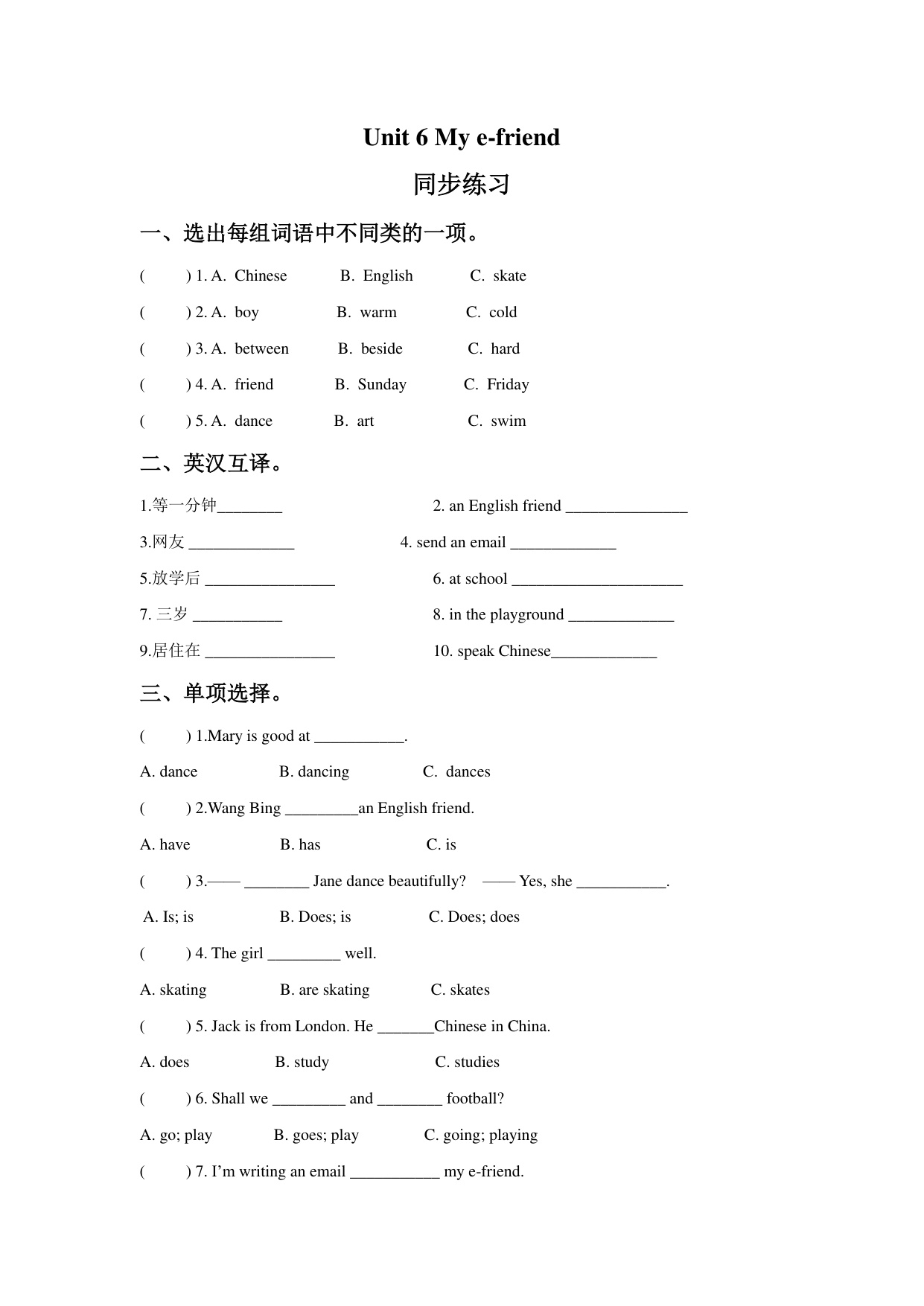 下一篇:一课一练第三套Unit 7 At weekends 同步练习A卷(苏教译林版英语五上)