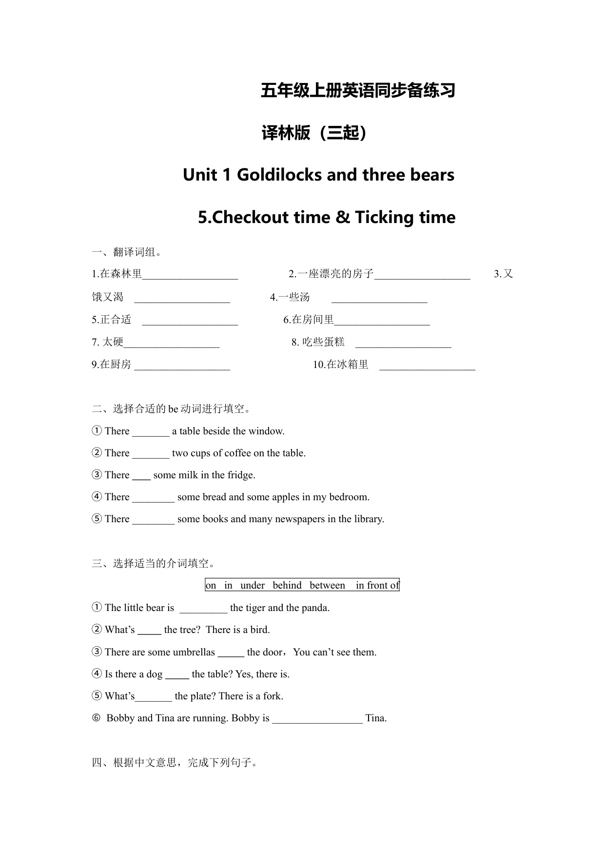 下一篇:一课一练第二套-Unit 2 A new student1-Story time译-林版(三起)五年级英语上册