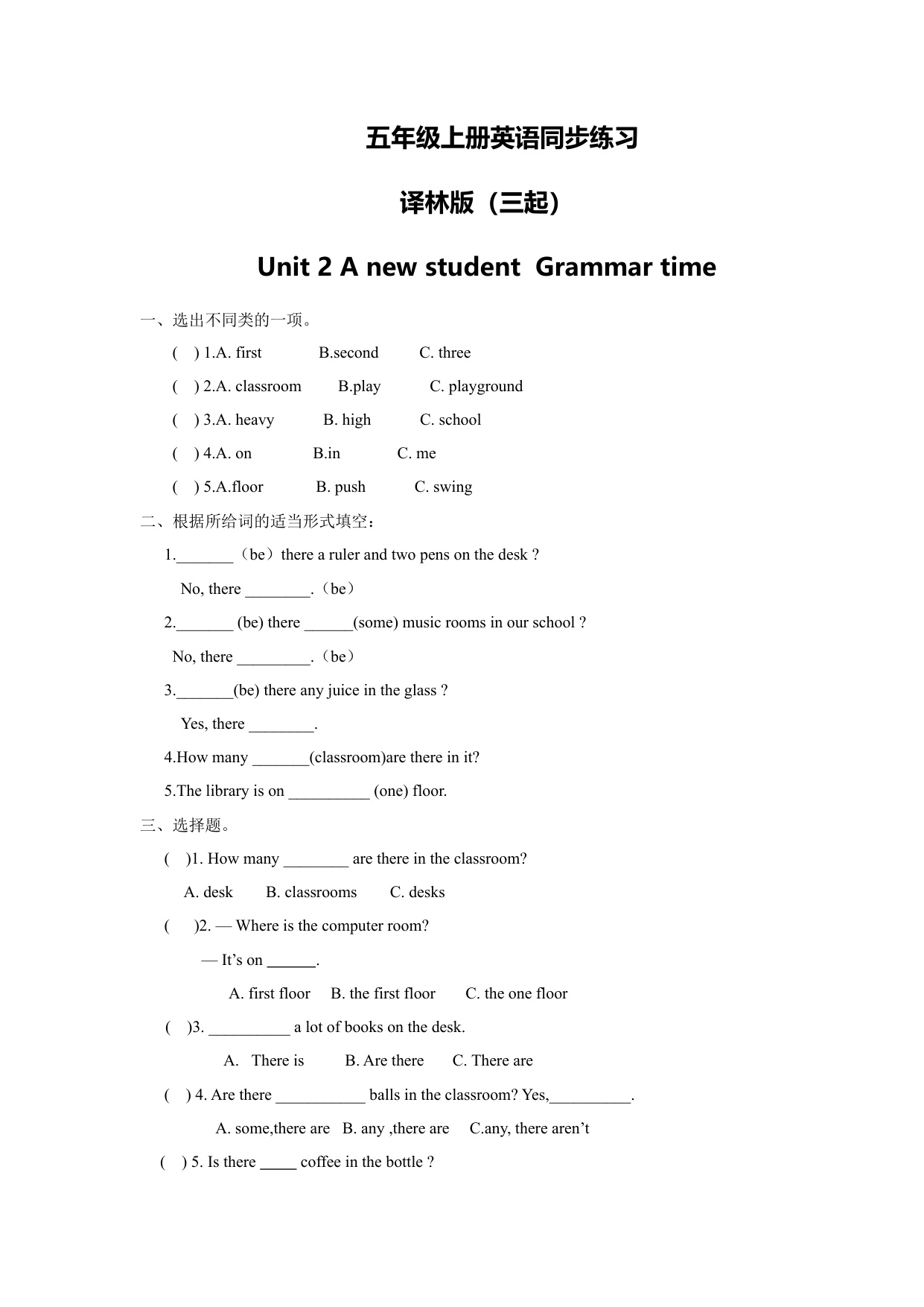 上一篇:一课一练第二套-Unit 2 A new student1-Story time译-林版(三起)五年级英语上册