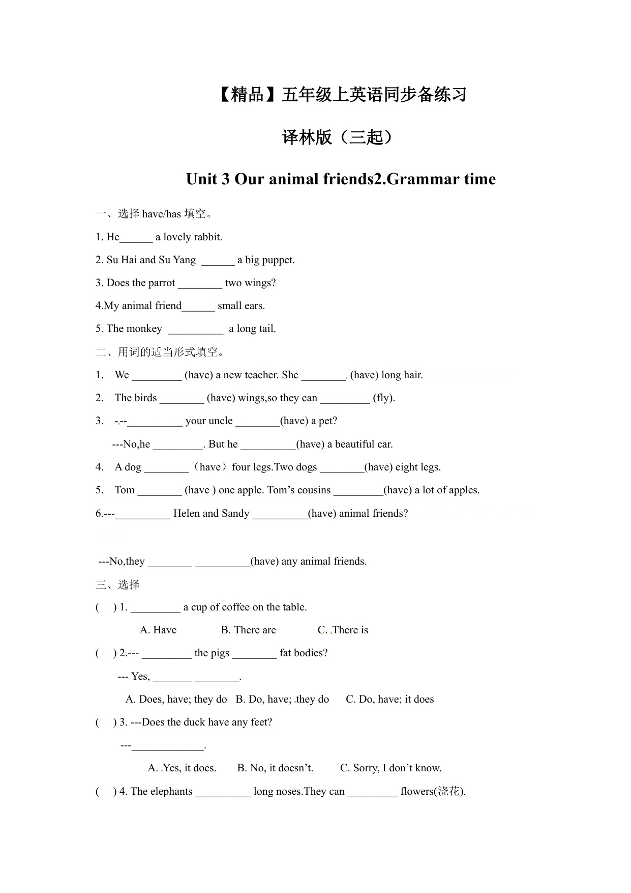 上一篇:一课一练第二套-Unit 3 Our animal friends1-Story time-译林版(三起)五年级英语上册
