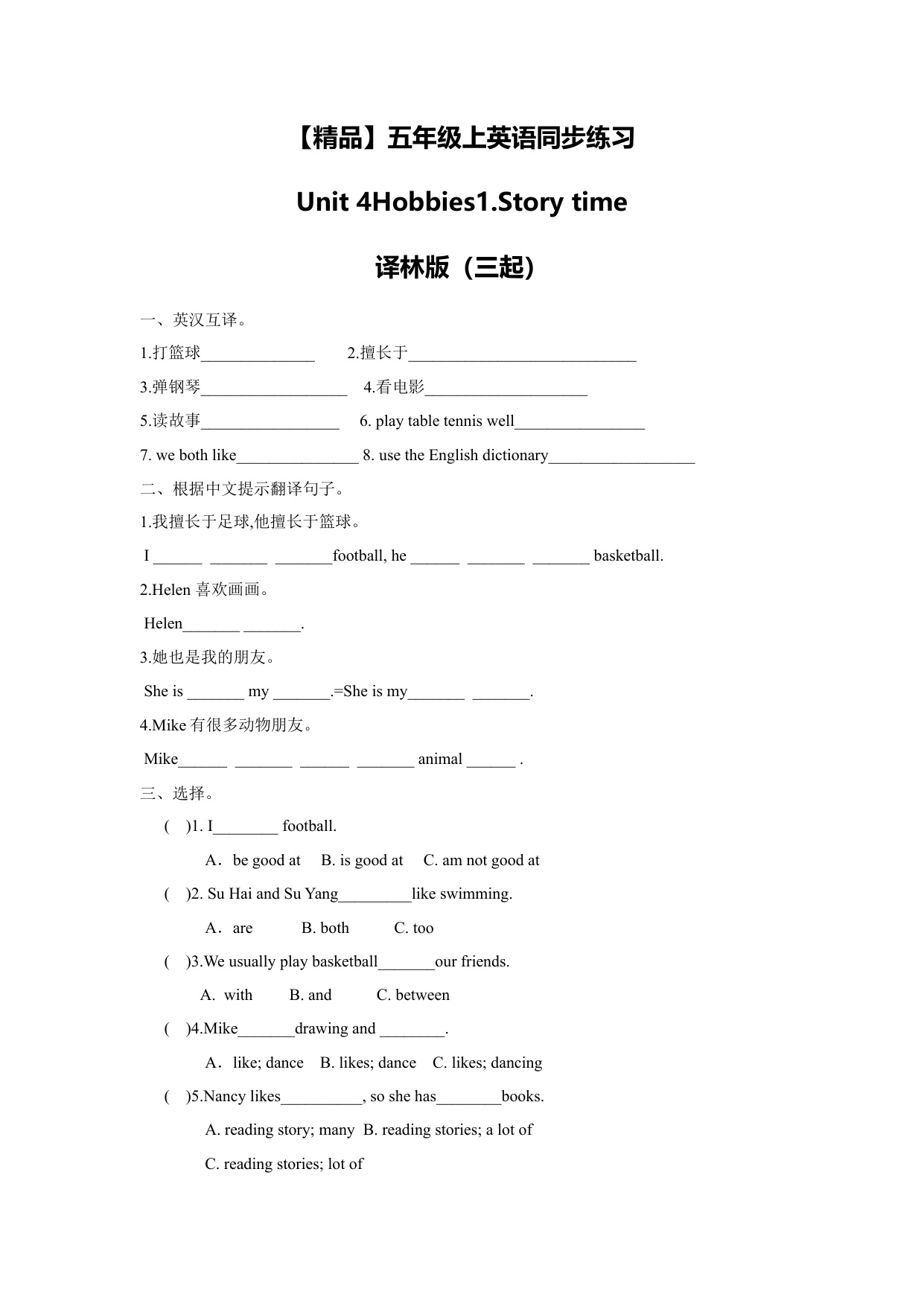 下一篇:一课一练第二套-Unit 4Hobbies2-Grammar time译林版(三起)五年级英语上册