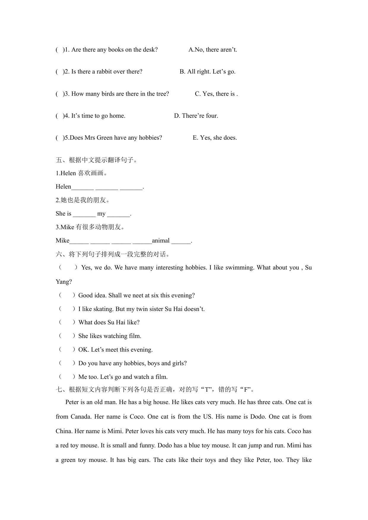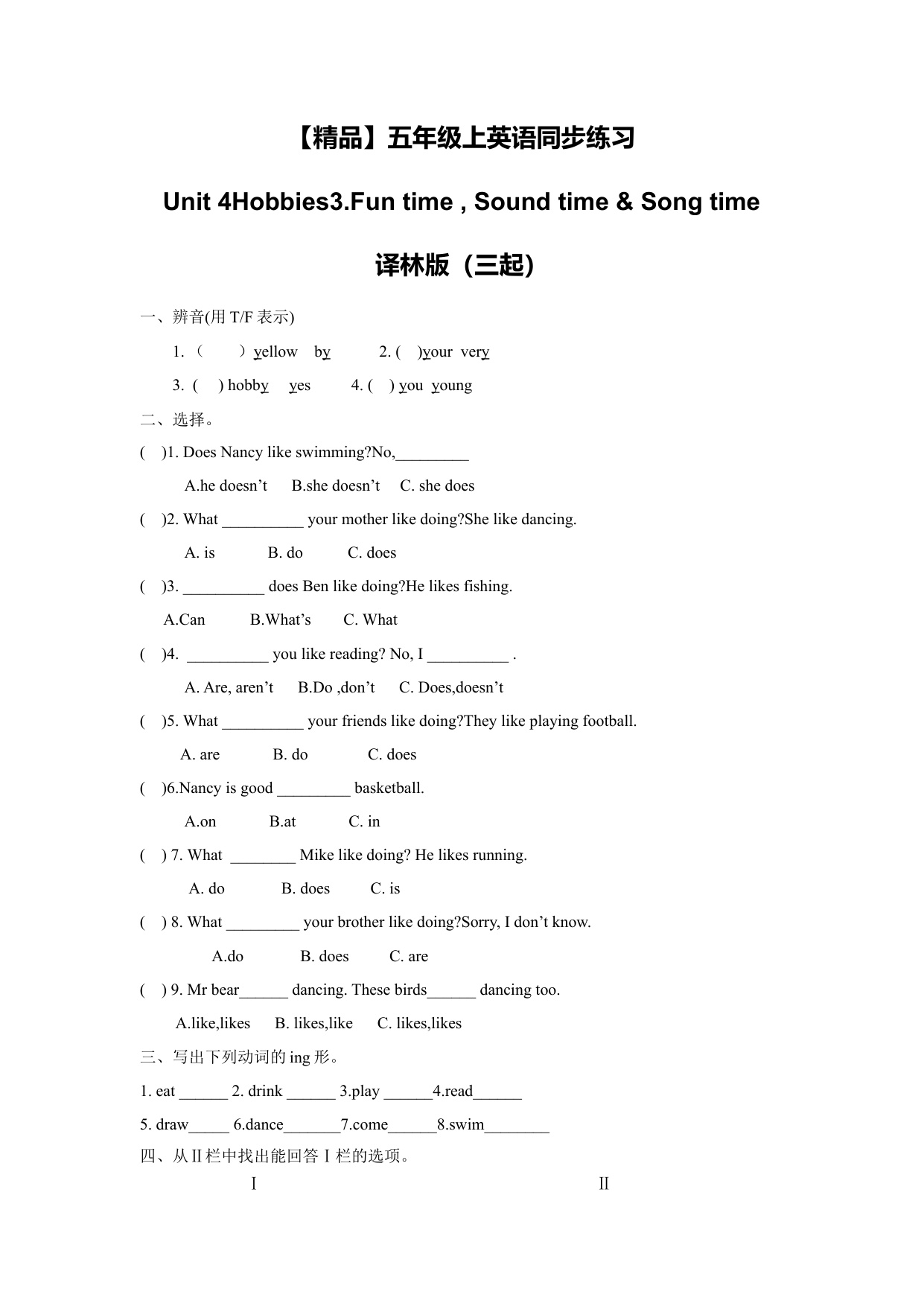 一课一练第二套-Unit 4Hobbies3-Fun time , Sound time 五年级英语上册 资料为Word格式,请下载后使用相应软件打开。