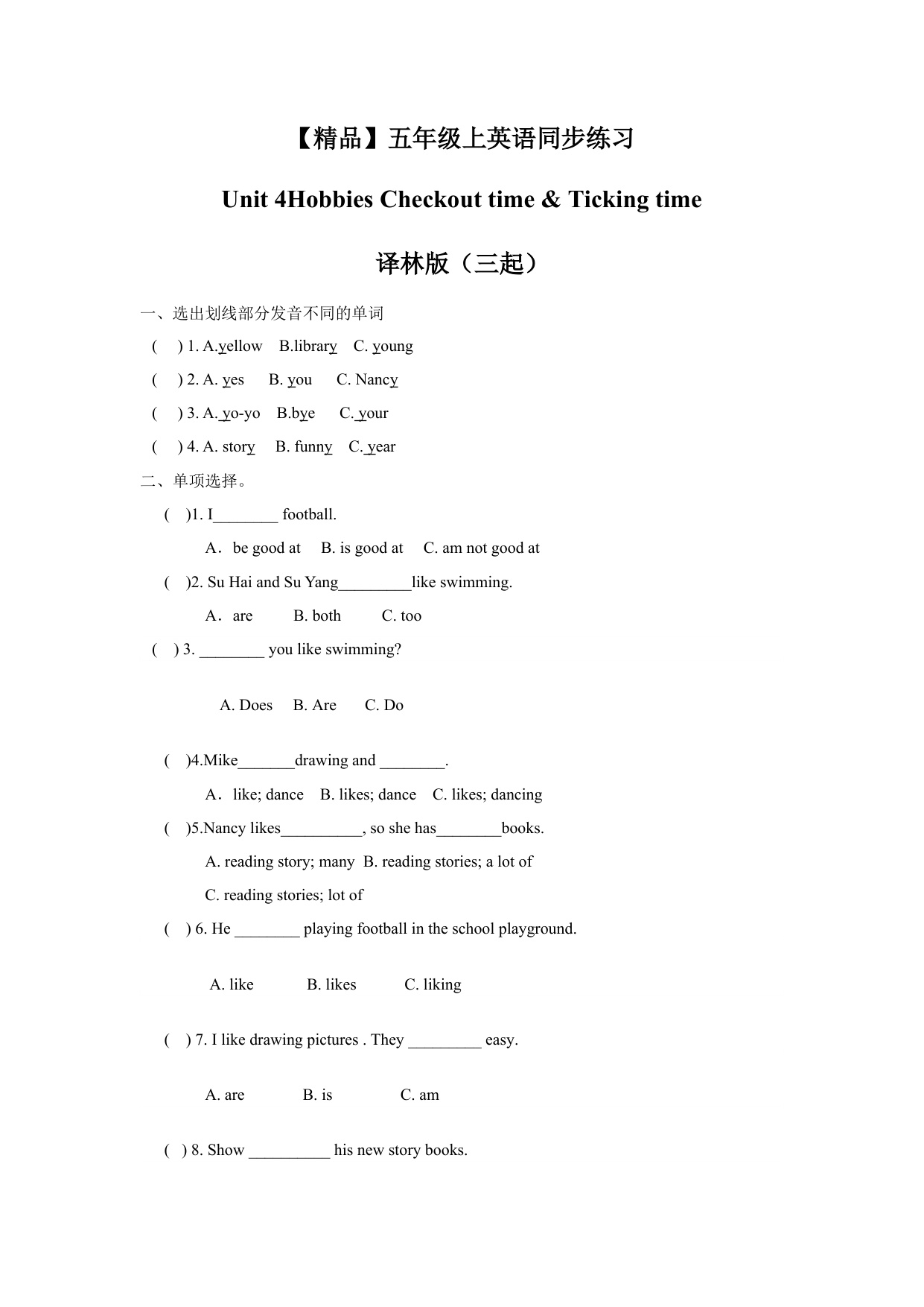 上一篇:一课一练第二套-Unit 4Hobbies3-Fun time , Sound time 五年级英语上册