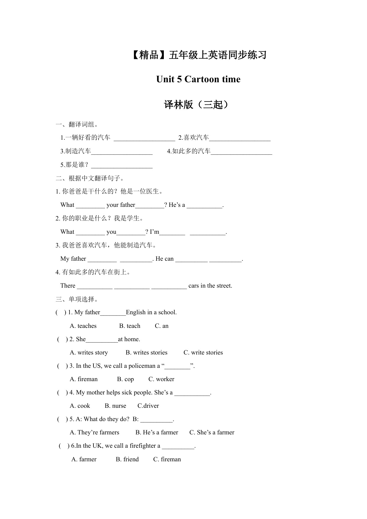 上一篇:一课一练第二套-Unit 5 2-Grammar time-译林版(三起)五年级英语上册
