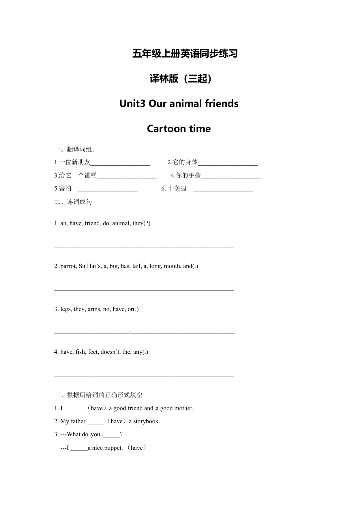 上一篇:一课一练第二套-Unit3 Our animal friends3-Fun time, Sound time & Culture time-译林版(三起)五年级英语上册