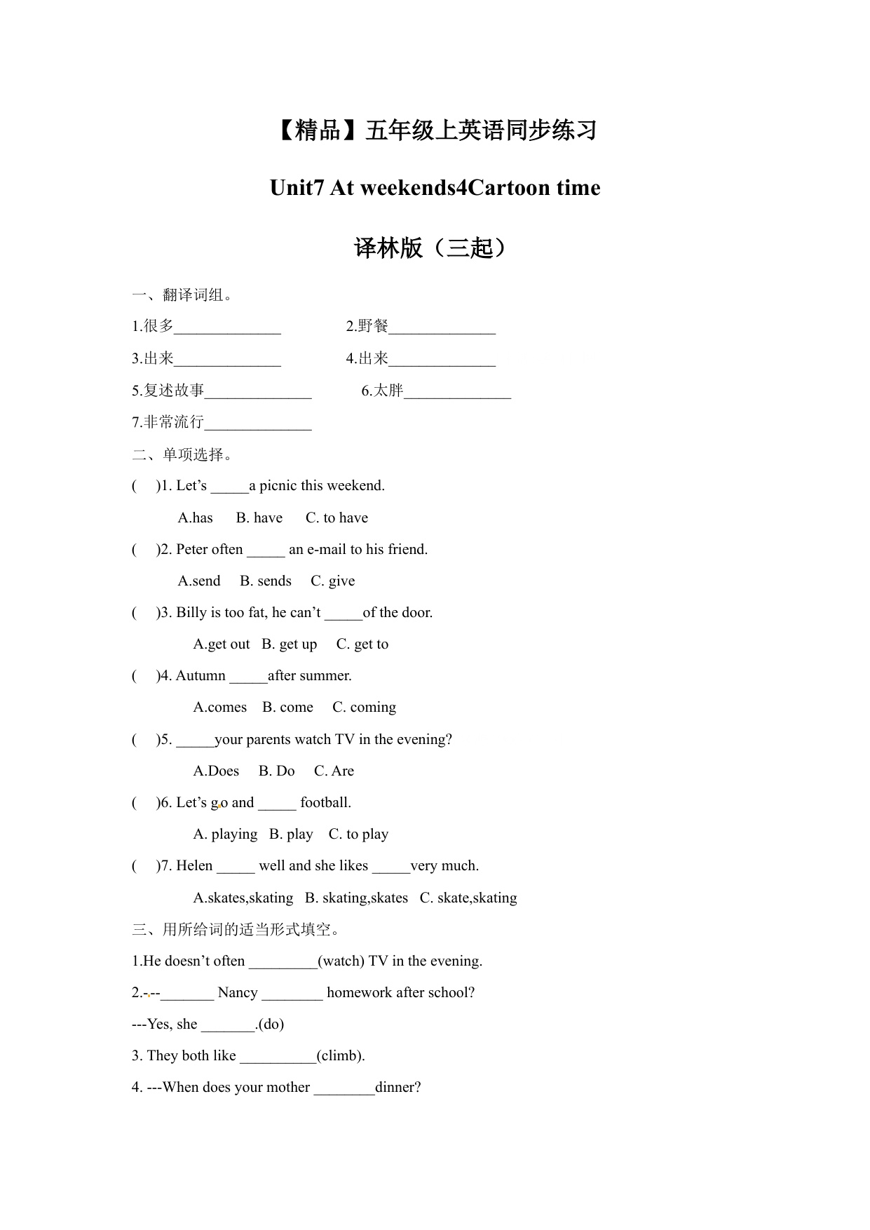 上一篇:一课一练第二套-Unit7 3-Fun time , Sound time & Songtime译林版(三起)五年级英语上册