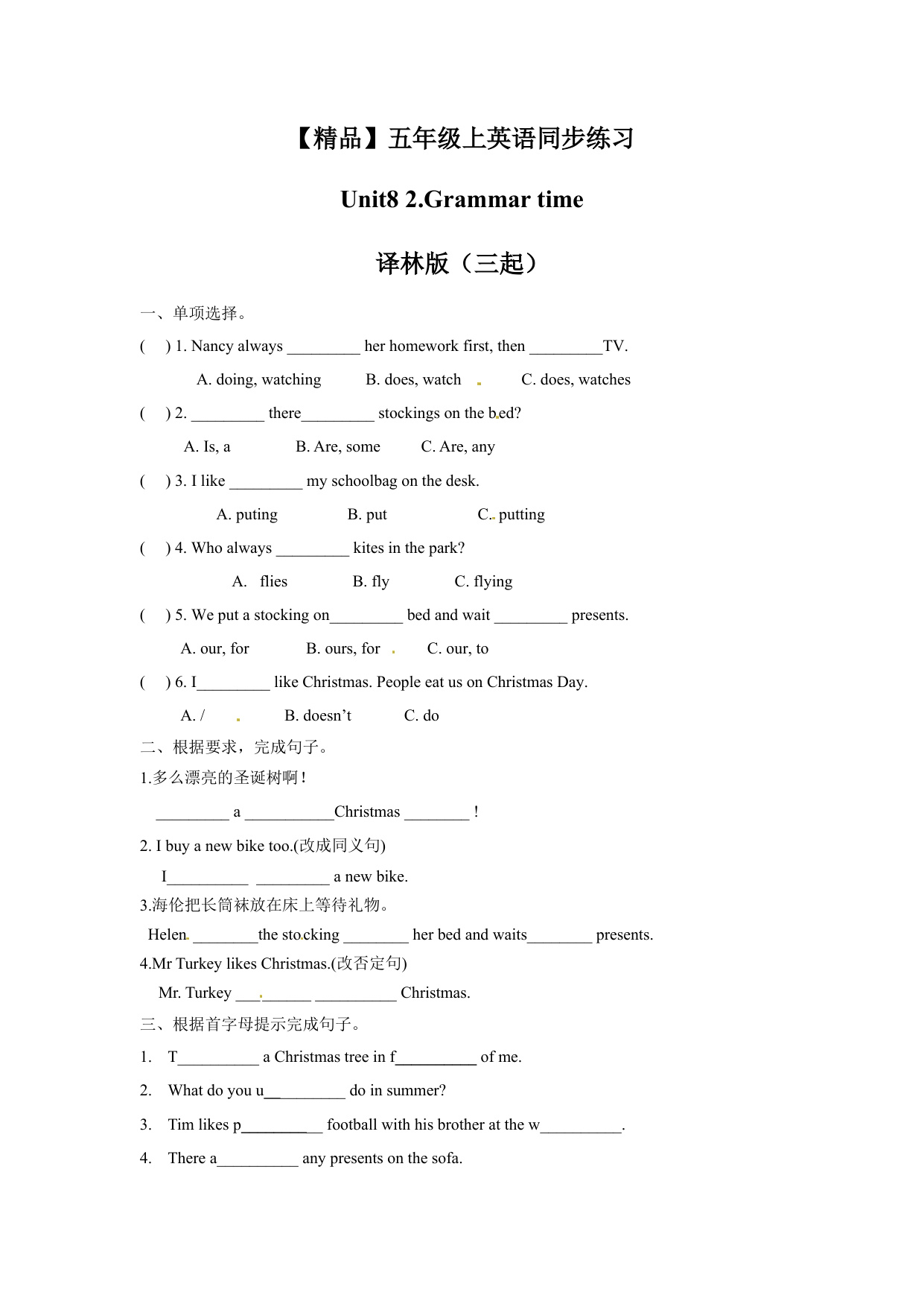 下一篇:一课一练第二套-Unit8 3-Fun time , Sound time & Songtime译林版(三起)五年级英语上册