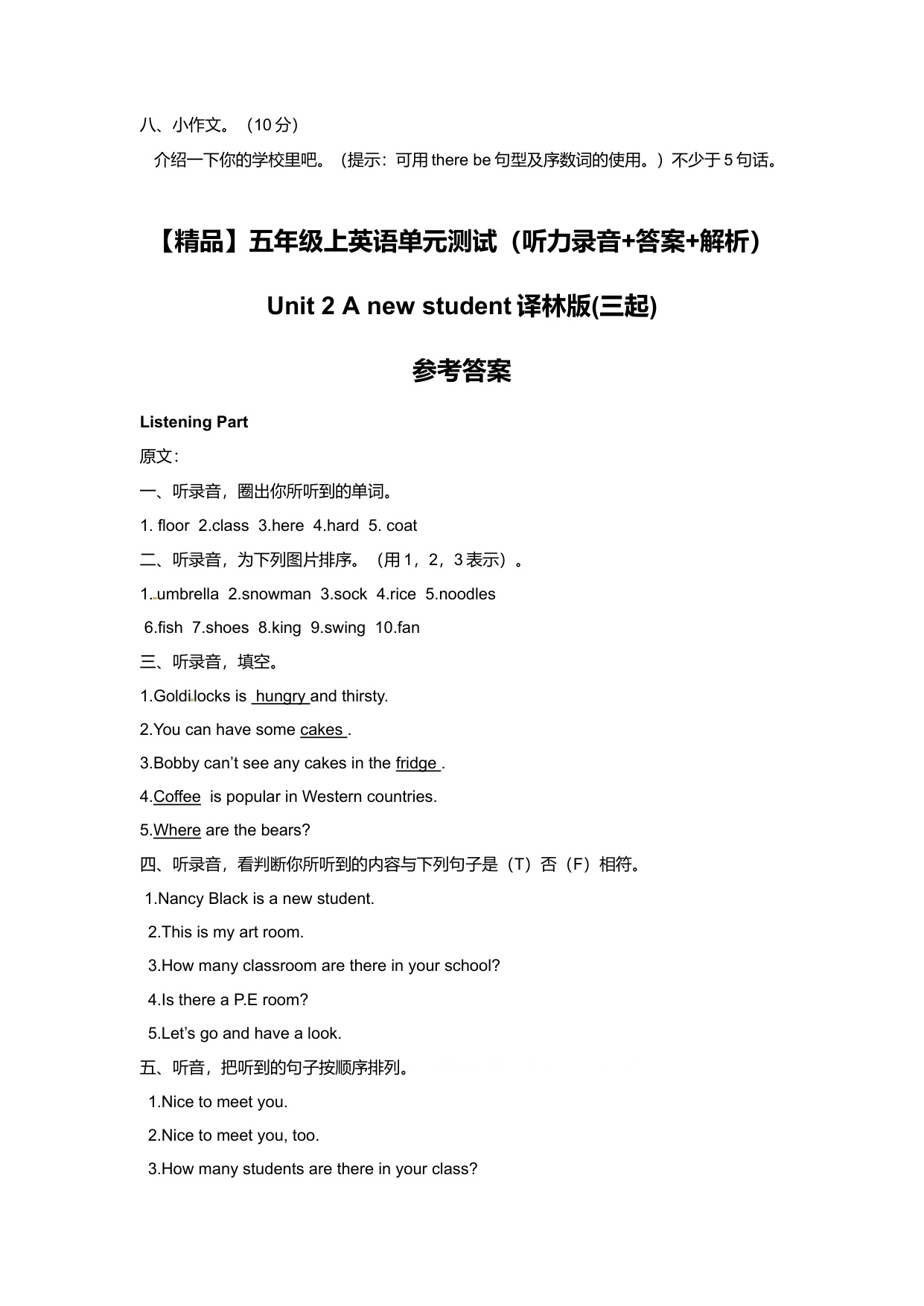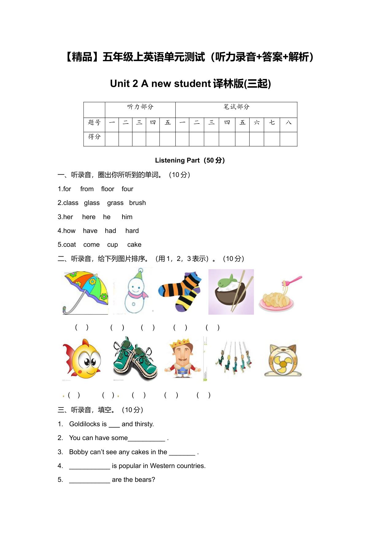 上一篇:(听力+答案+解析)-Unit 1 Goldilocks and the three bears译林版(三起)