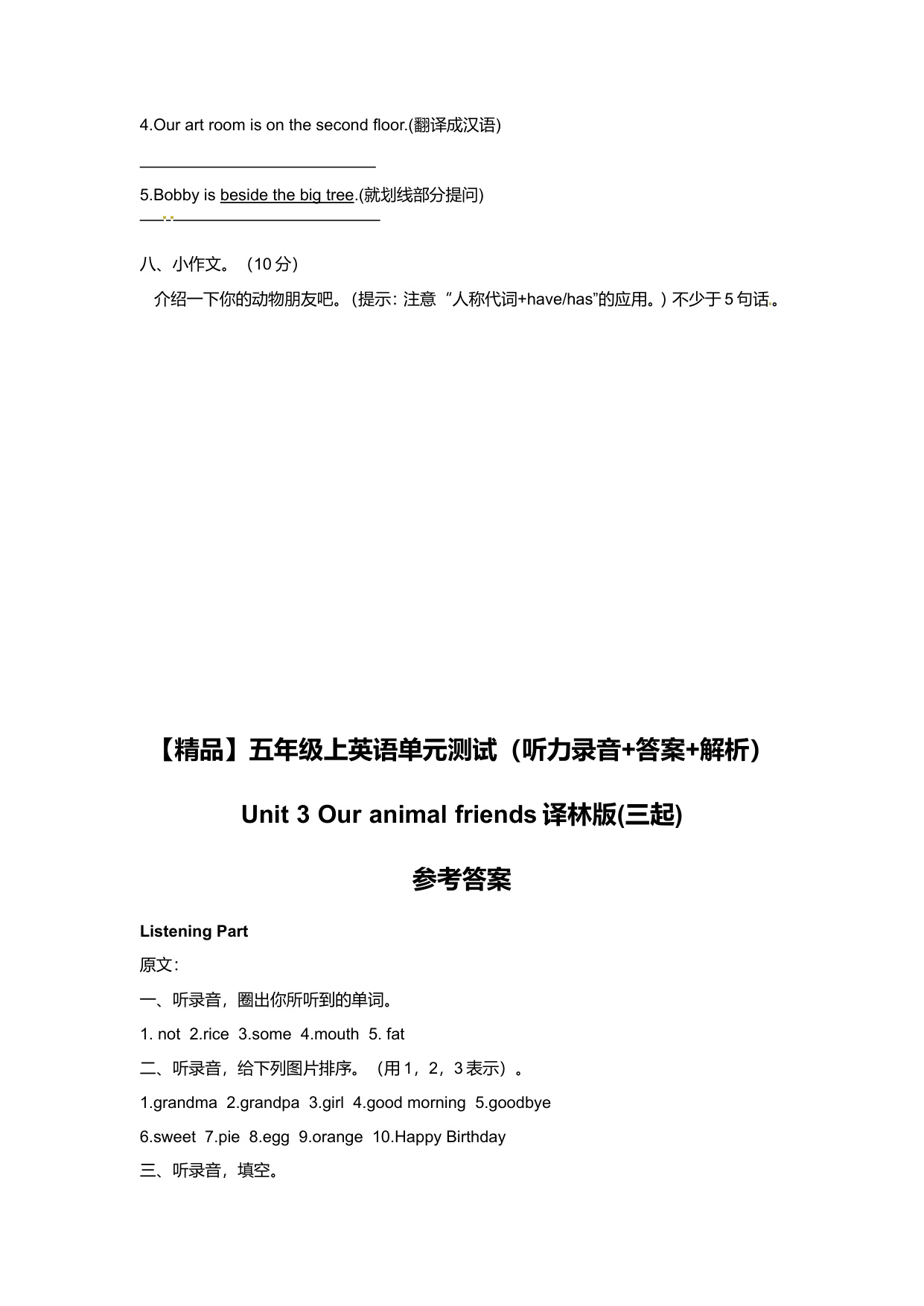 上一篇:(听力+答案+解析)-Unit 2 A new student译林版(三起)