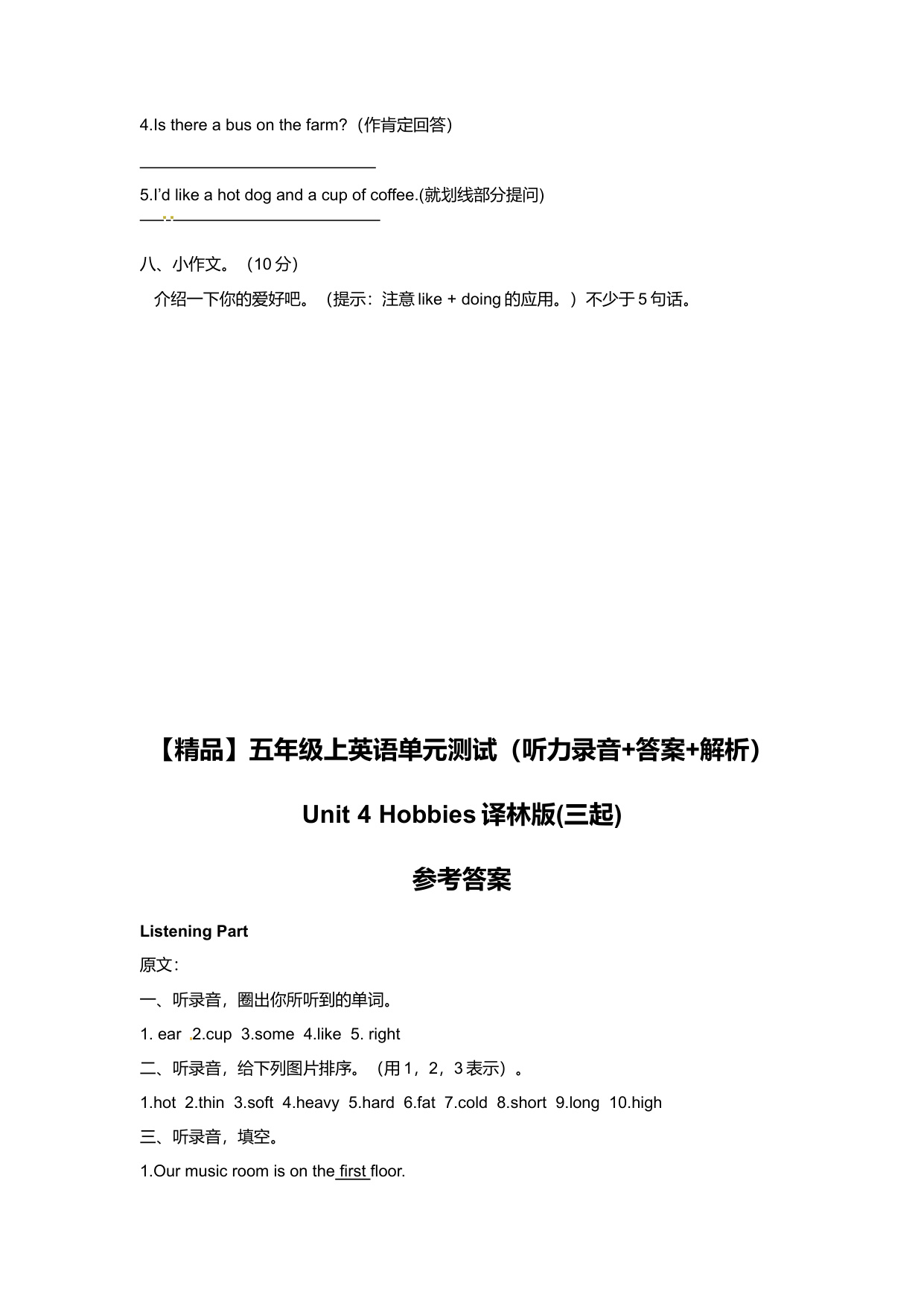 下一篇:(听力+答案+解析)-Unit 5 What do they do 译林版(三起)