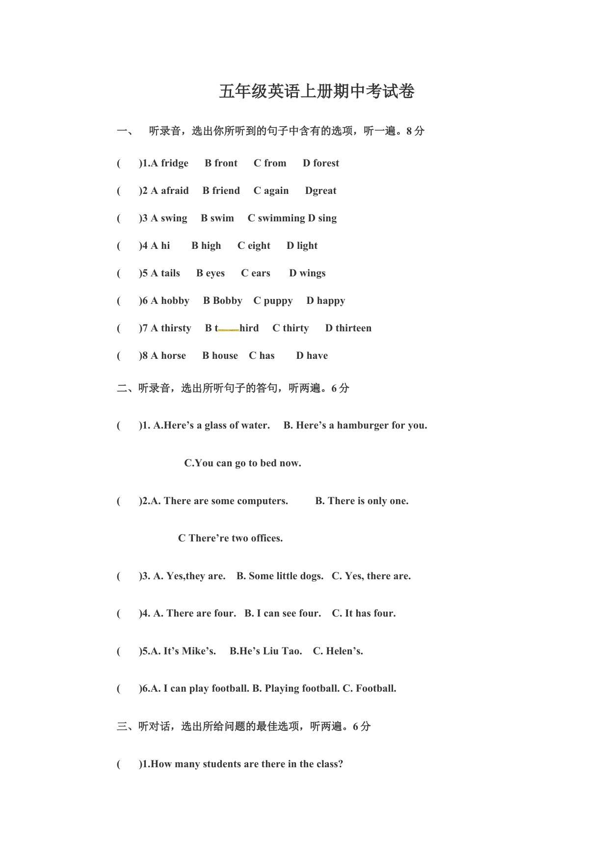 下一篇:五年级上册期中测试卷(3)含听力